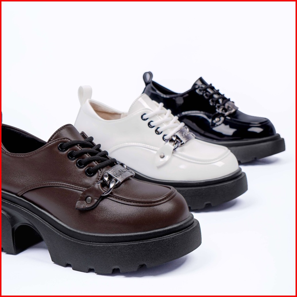 Findal Sepatu Wanita Oxford Platform Shoes Tali Hak Tinggi Karet Bahan Glossy Kekinian Ki-121