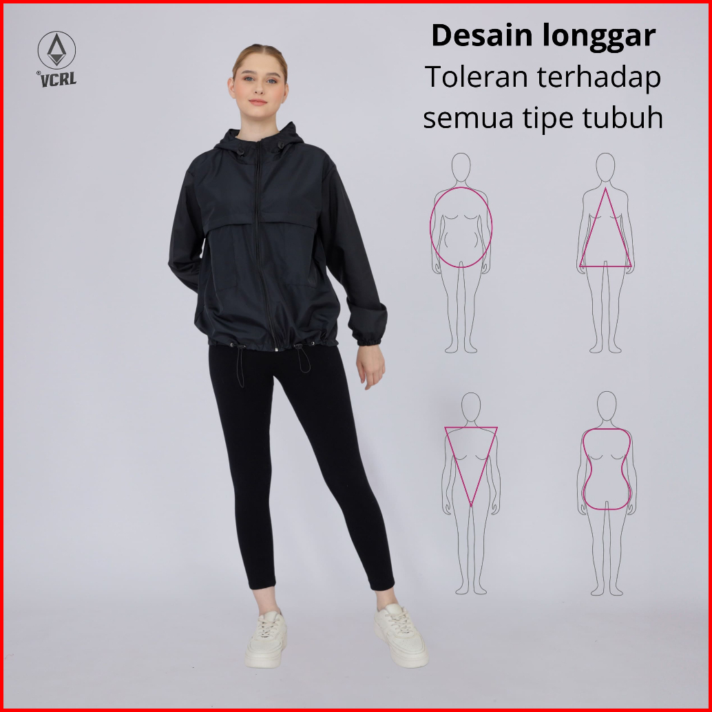 Vcrl Jaket Parasut Windbreaker Wanita Pria Bahan Despo Premium Stylish Olahraga Jogging Running