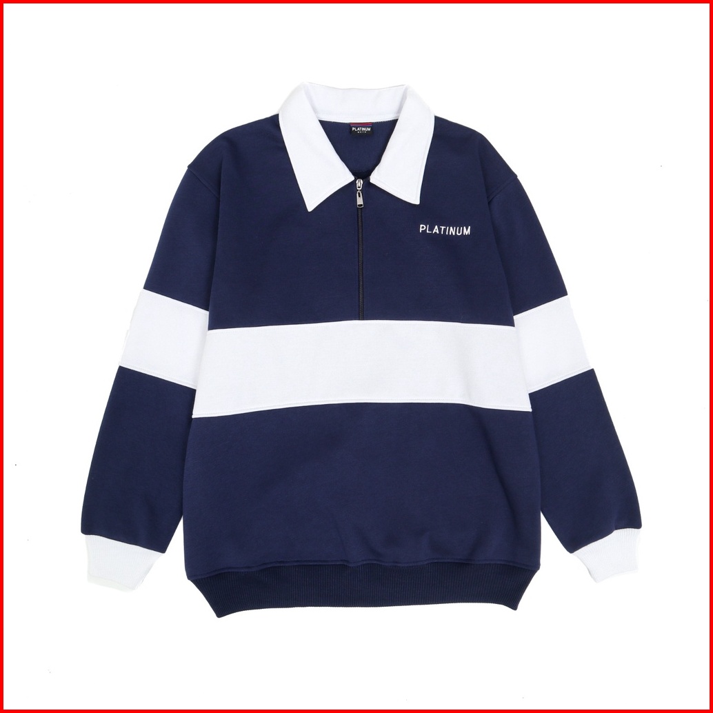 Platinum World Sweatshirt Crewneck Half Zipp Rugby Kombinasi Pria - Wanita V6