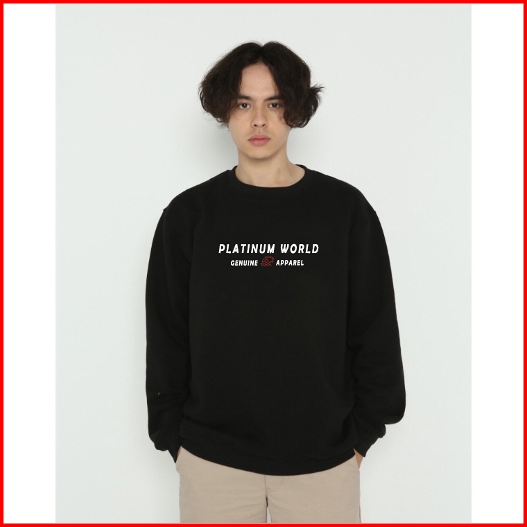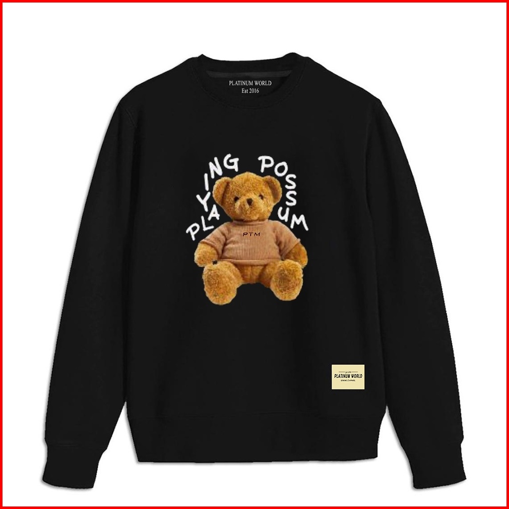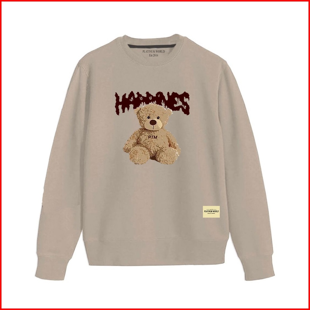 Sweater Platinum World Happines Bear Cream Beige Original L Crewneck Original Platinum Terlaris