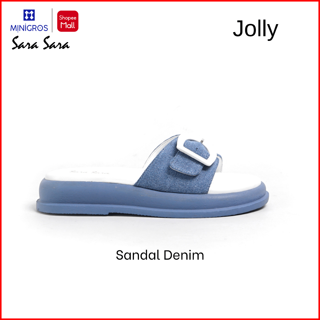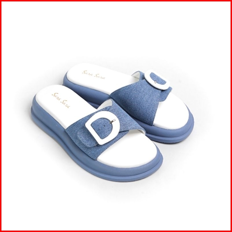 Sara Sara Jolly Sandal Slop Denim Gesper Sol Platform Wanita