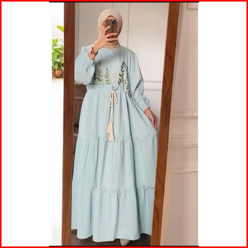 Gheisa Dress Gamis Bordir Wanita Pure Linen Premium