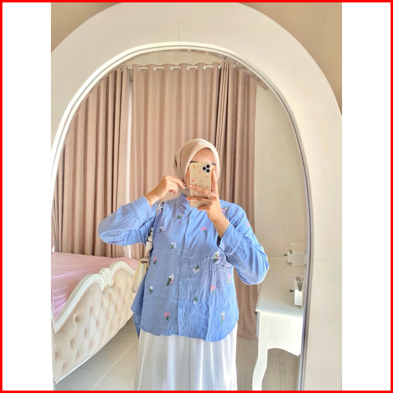Fika Blouse Bordir Atasan Wanita Lengan Panjang Rayon Twill Premium