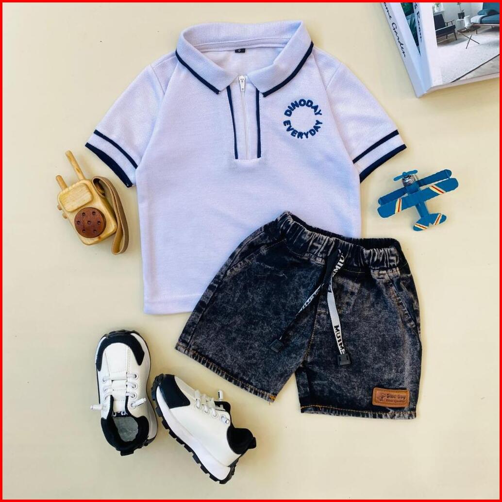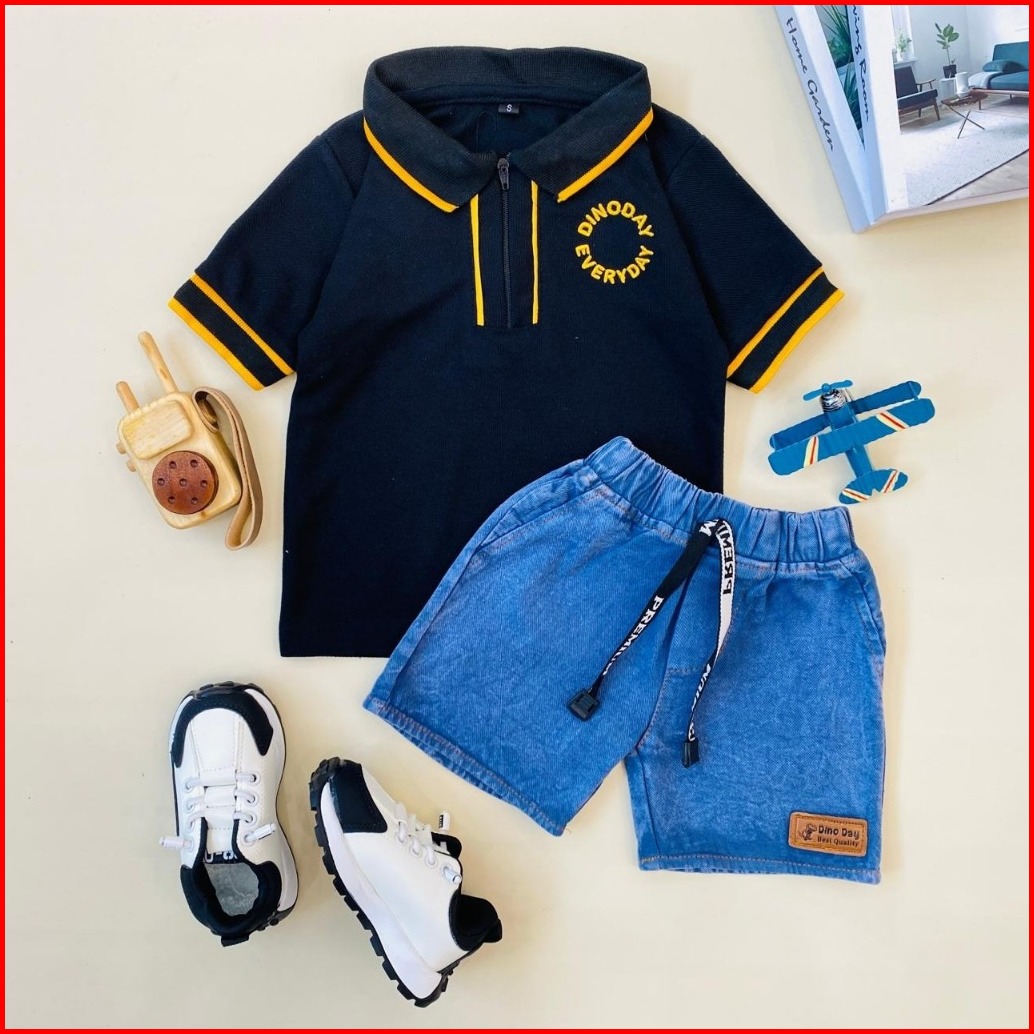 Estishop X Dinoday Setelan Anak Laki Laki Kaos Wangki Kerah Polo Celana Jeans 1-9 Tahun