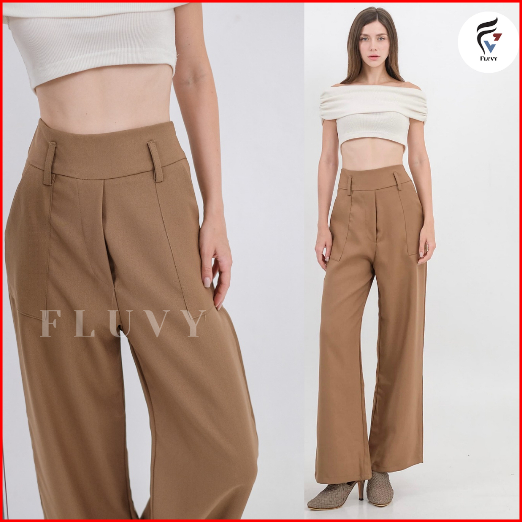 Fluvy - Diora Pants - Celana Wanita Highwaist - Kain Anti Kusut Dan Jatuh Flowly