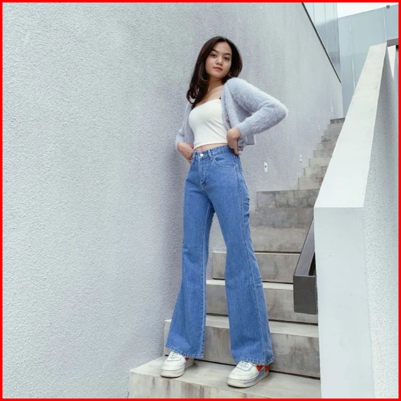 Celana Jeans Cutbray Highwaist Wanita - Celana Jeans Wanita - Celana Cutbray Stretch Import - Celana Jeans Highwaist Den