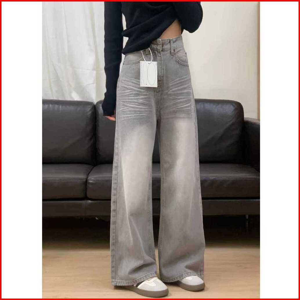 Lulu Abu-abu Kulot Highwaist Celana Panjang Wanita-baggy Jeans Wanita--goresan Halus Dan Jelas