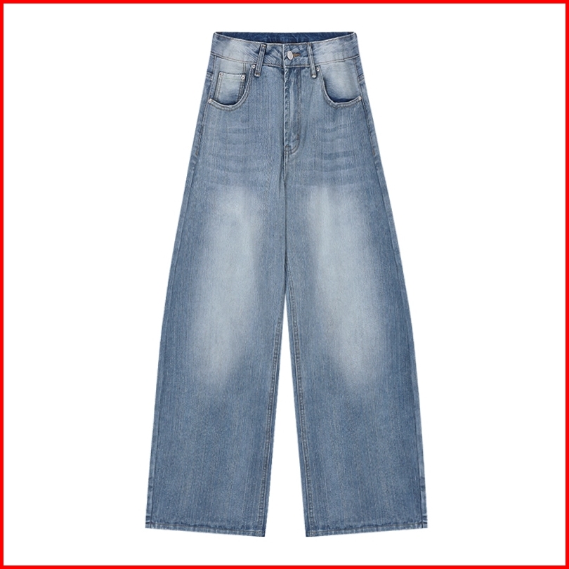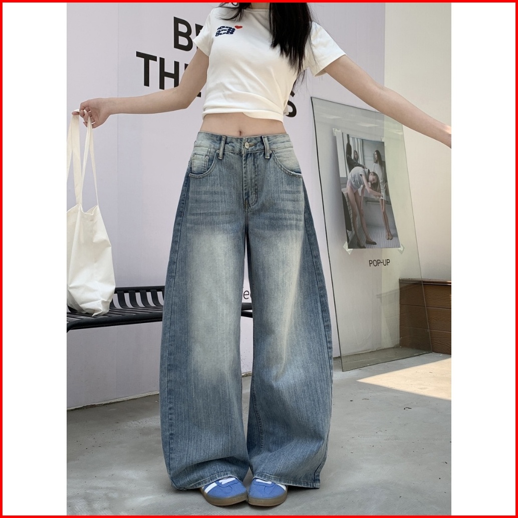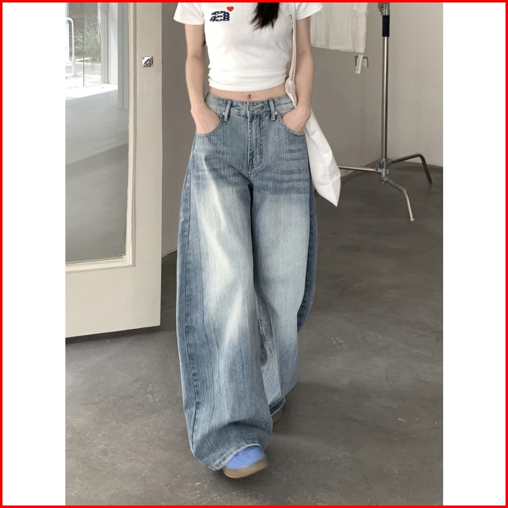 Lulu Jeans Premium High Waist Biru Kain Bergaris Vertikal Fashion Jeans Wanita Baggy Baggy Jeans Korean--celana Panjang