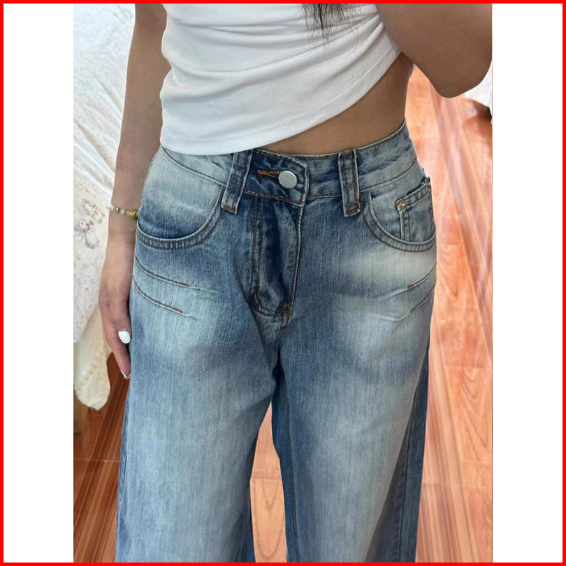 Lulu Jeans Model Terbaru Kulot Celana Jeans Baggy Wanita--jeans Biru High Waist