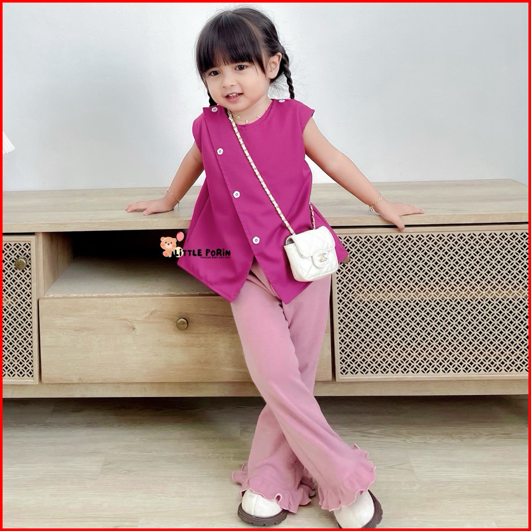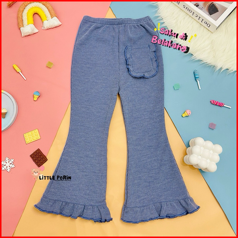 Little Porin - Celana Cutbray Ruffle Anak - Celana Rib Knit Anak - Celana Panjang Anak Perempuan