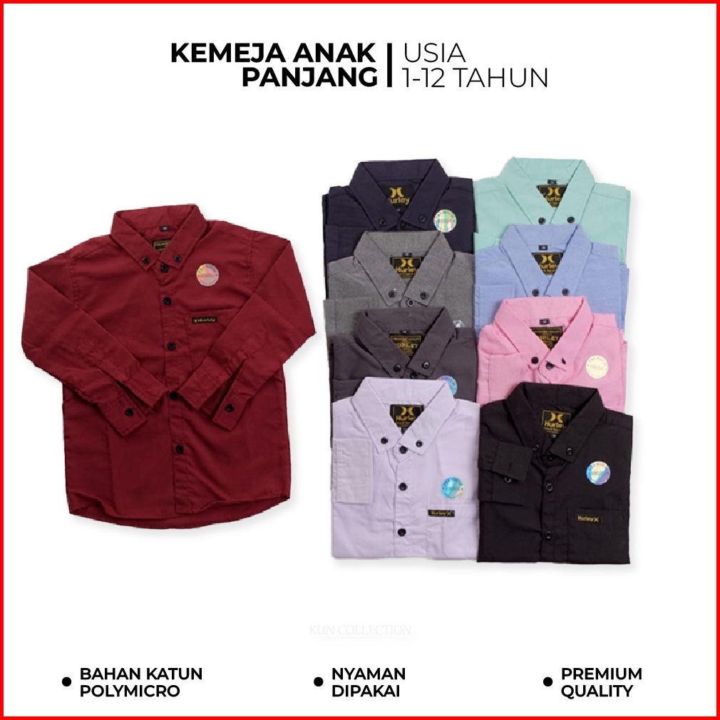 Terlaris Kemeja Anak Laki-laki Lengan Panjang Usia 1-12 Tahun Bahan Katun