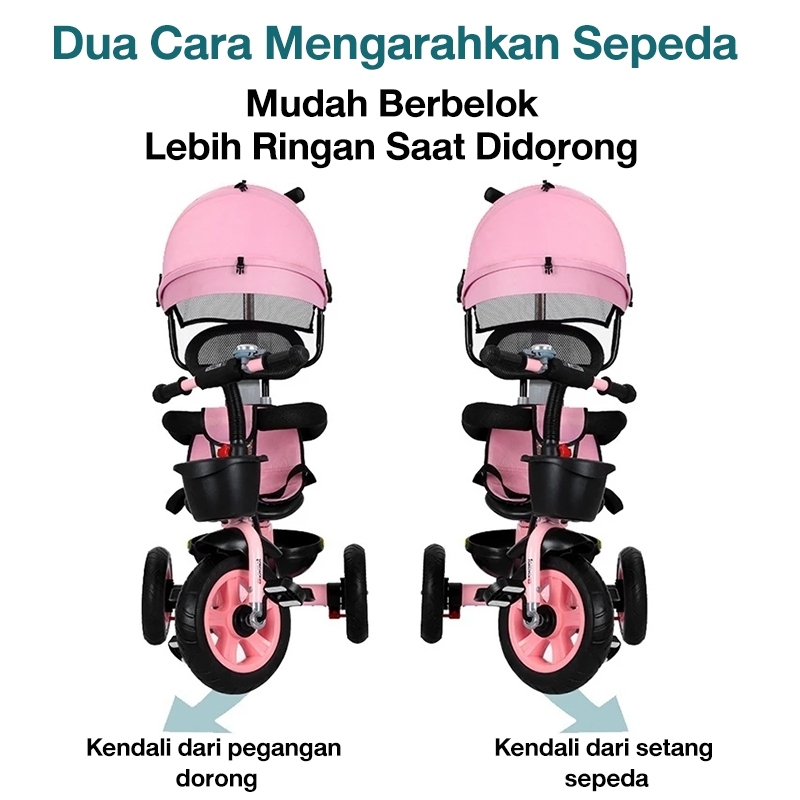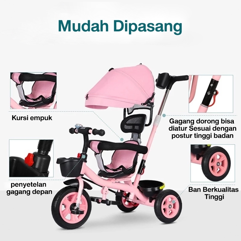[Star] BEIGE Sepeda Anak Roda 3 3in1 Keranjang Putar & Rebah Multifungsi Usia 1-8Tahun Aman