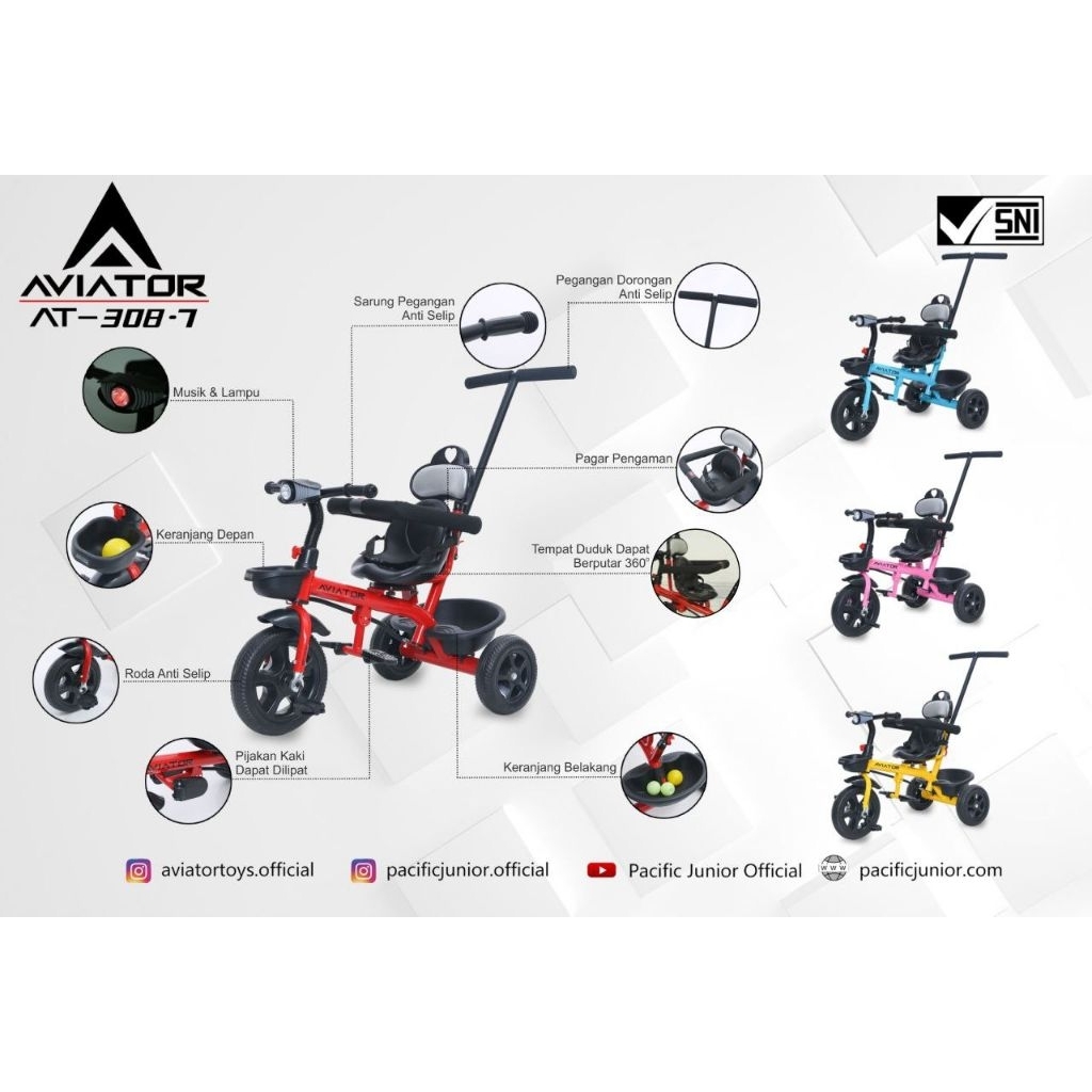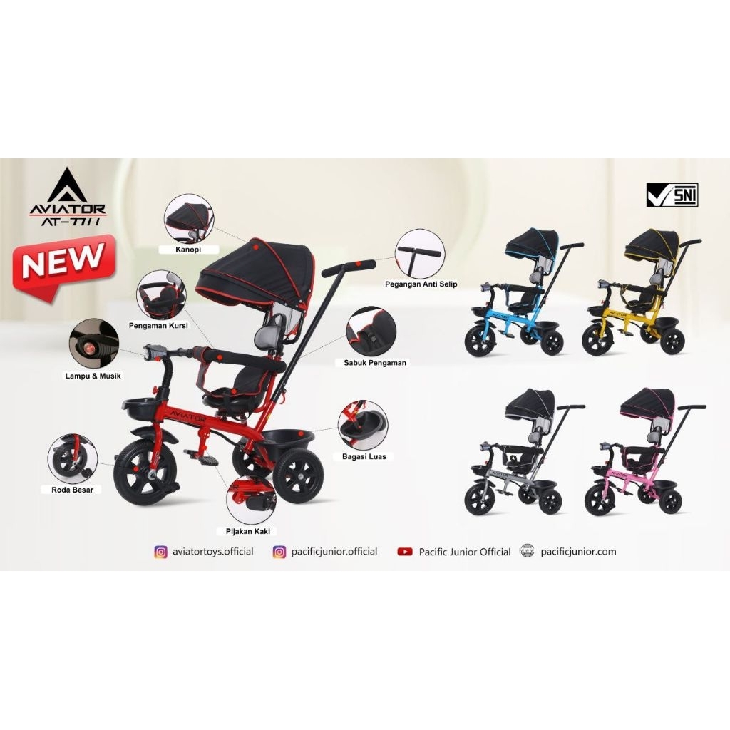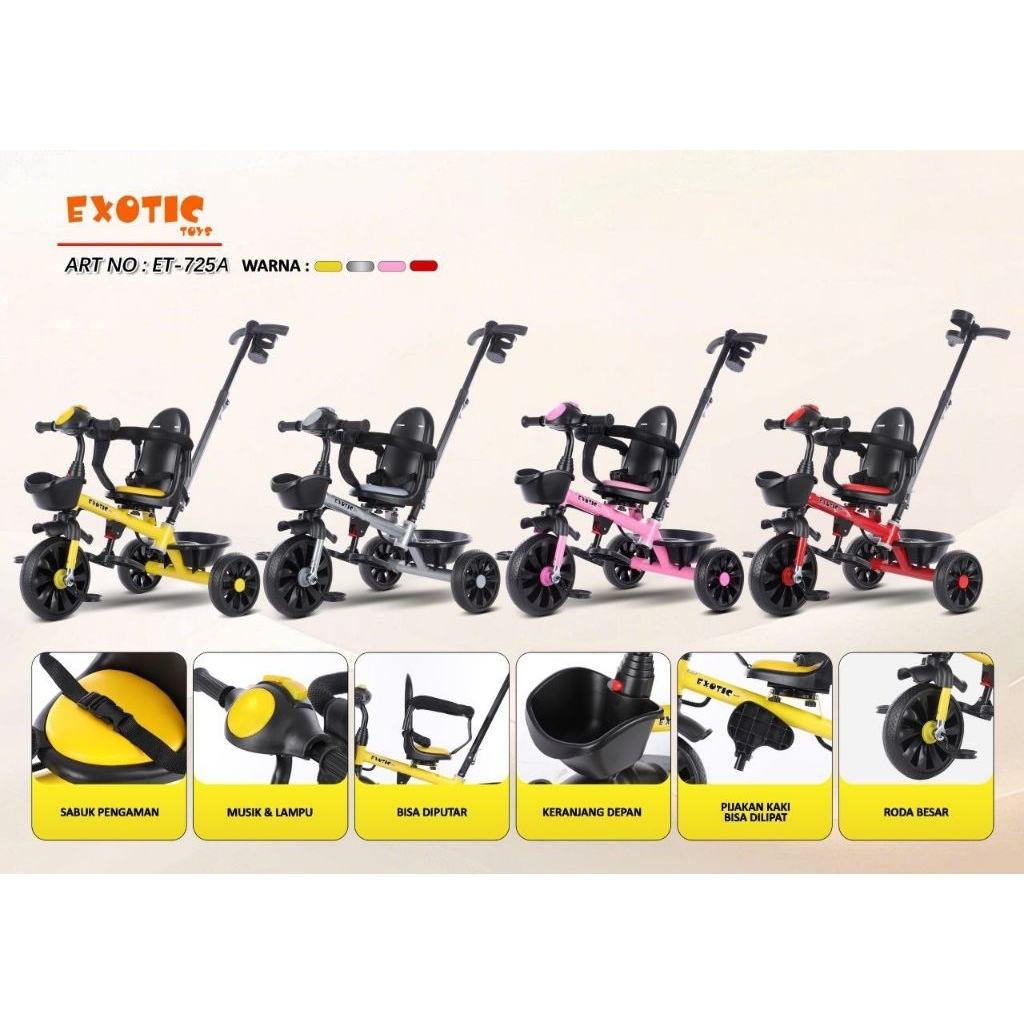 [Star] Sepeda Roda 3 Tiga Merk EXOTIC Dan Aviator. Musik Lampu Dorong Tricycle Anak