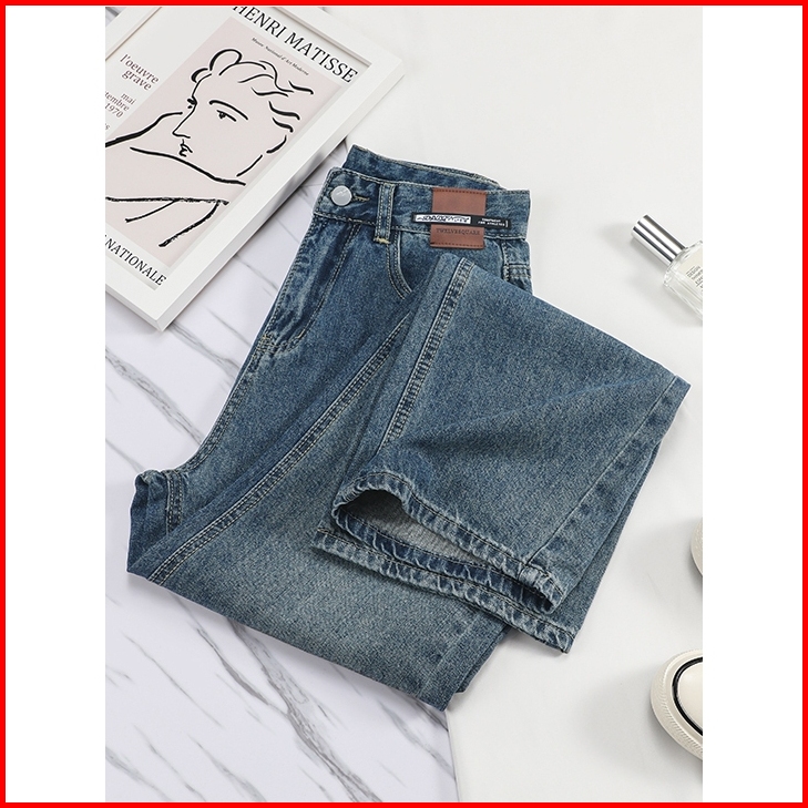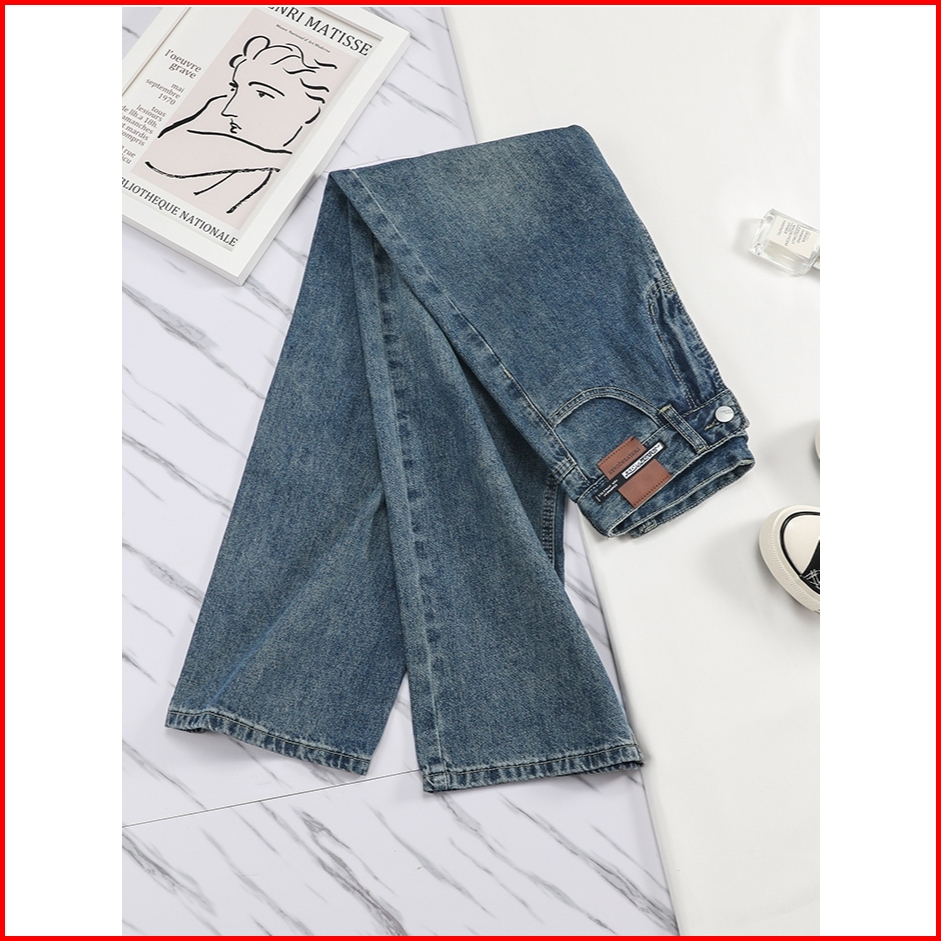 Biru Retro Hight Waist Kulot Celana Jeans Wanita Korea 2025