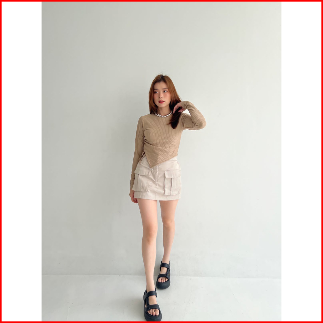 Gianna Longsleeve Side Scrunched L Top Wanita Lengan Panjang L Liya Ripped Top L Gianna Knit Top L Top Wanita Lengan Pan