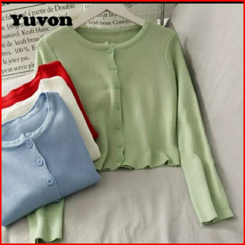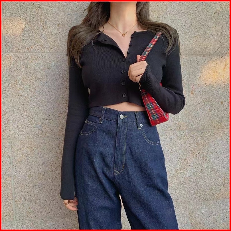 Korean Long Sleeve Cardigan Button Crop Top Cardigan Lengan Panjang Kancing 3007