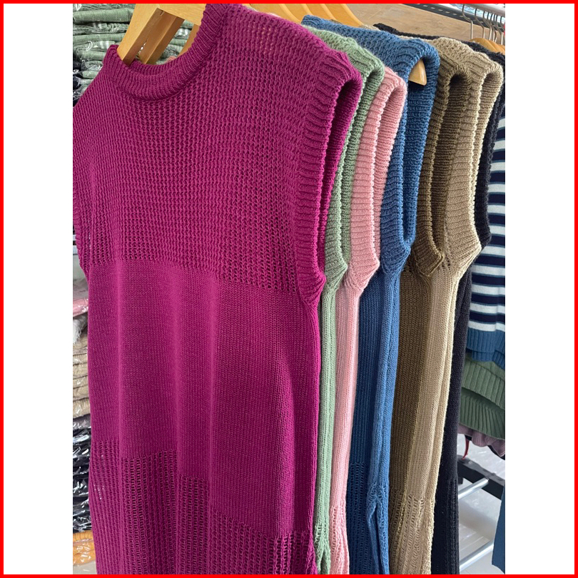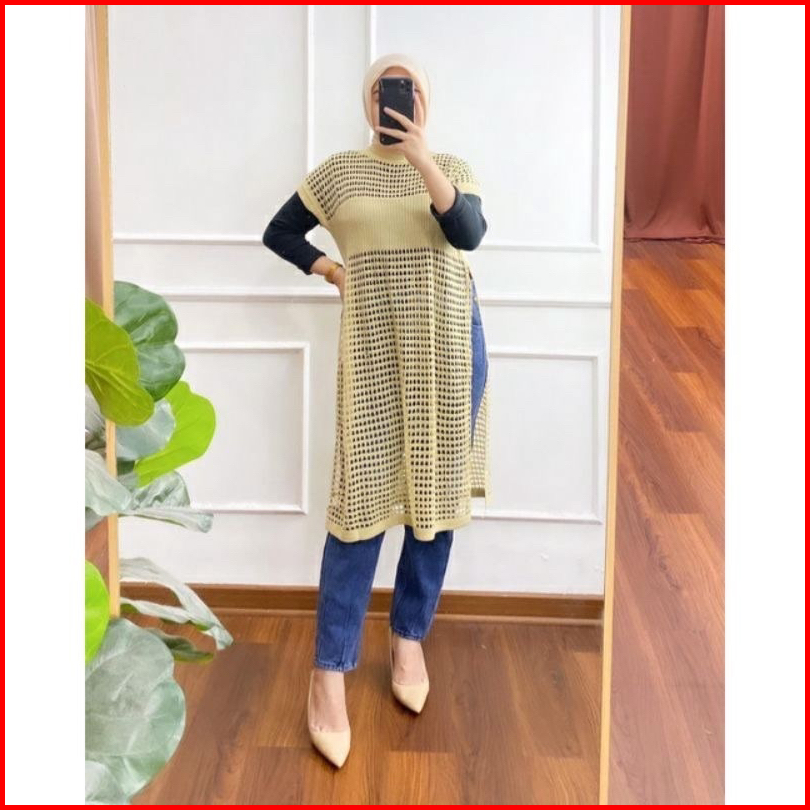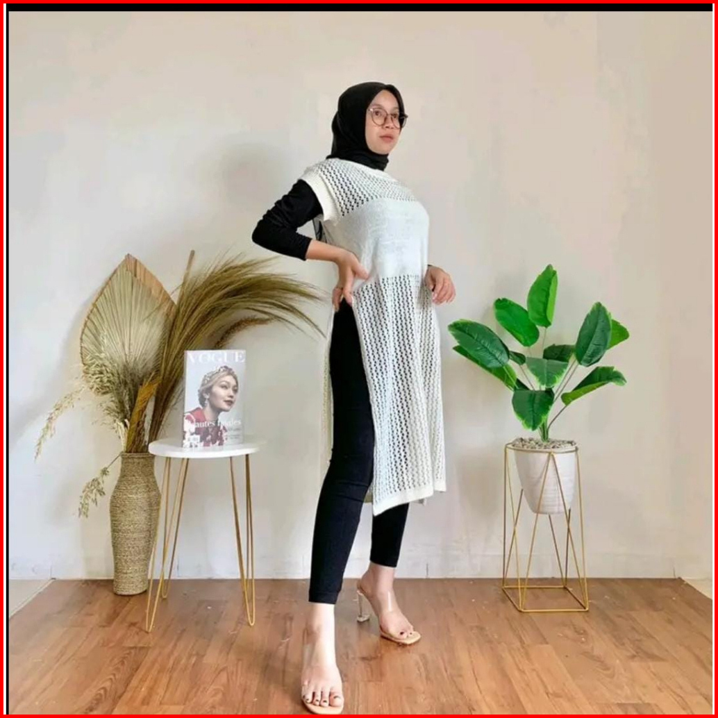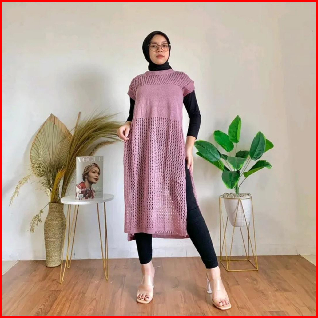 Ruby Tunik Jaring - Atasan Wanita Tanpa Lengan - Tunik Rajut Belah Samping