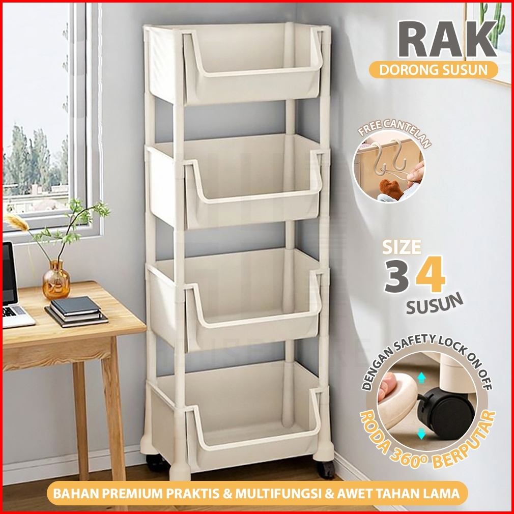 Hoptech - Rak Susun Serbaguna 3-5 Tingkat Dengan Roda Portable Untuk Buku Mainan Penyimpanan