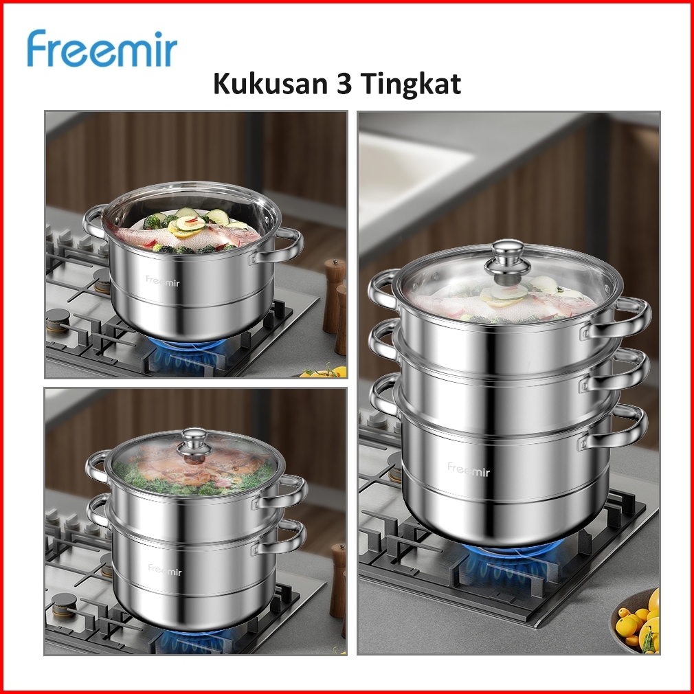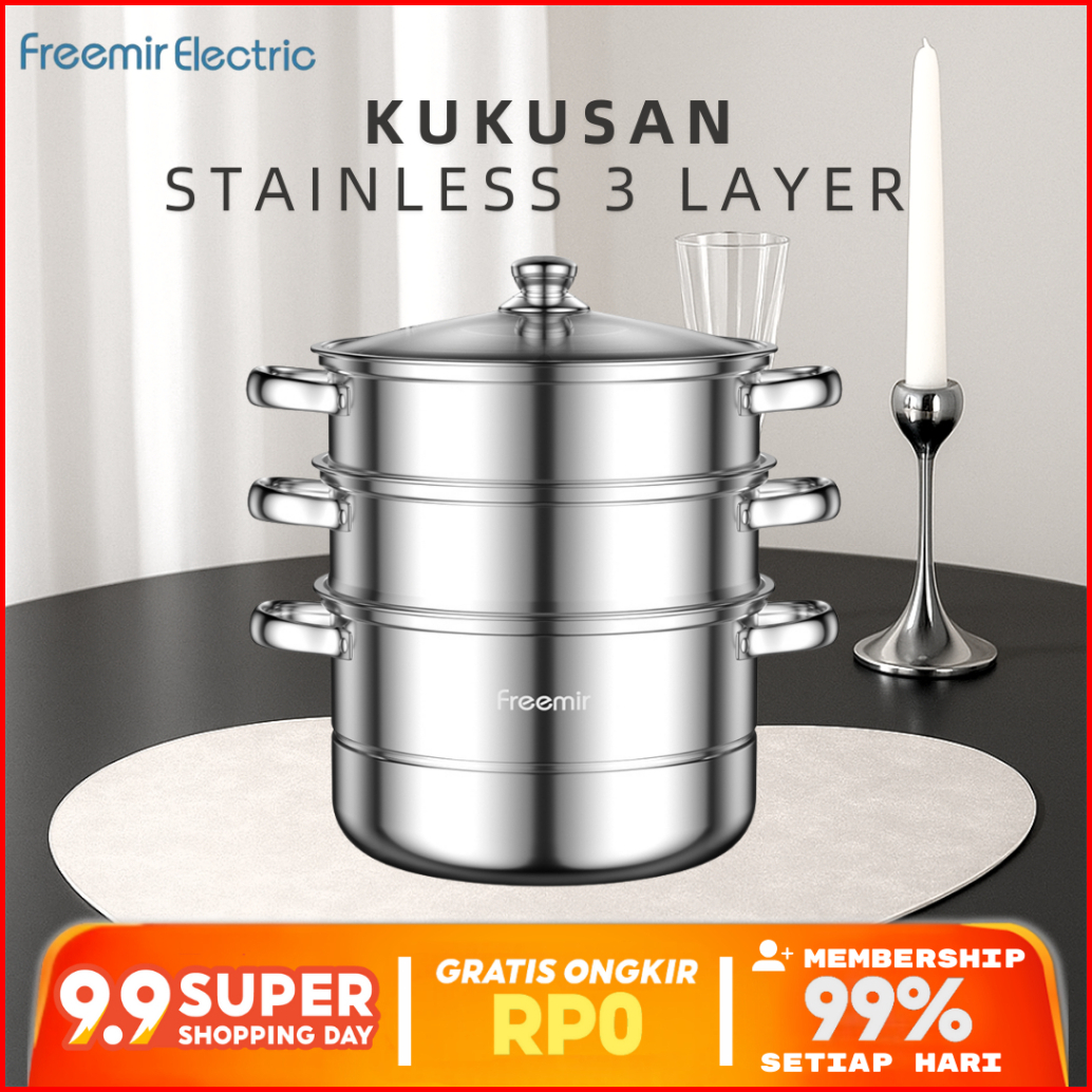 Sale Freemir Electric Langseng Kukus Stainless Steel Tutup Kaca 2 3 Tingkat 100 Garansi Kerusakan