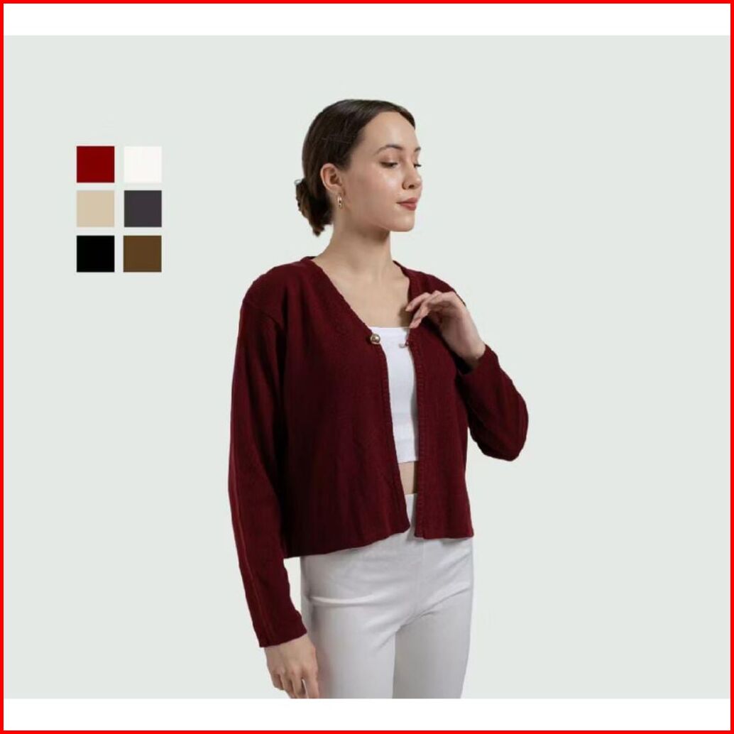 Cardigan Crop Maja - Cardi Outer Rajut Wanita Polos Lengan Panjang Korean Style