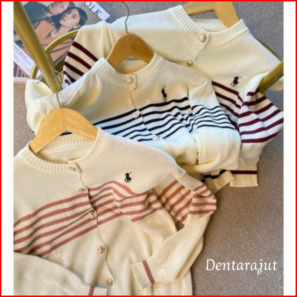 Ericka Cardigan Rajut Wanita Motif Polo Stripe Lengan Panjang Korean Style
