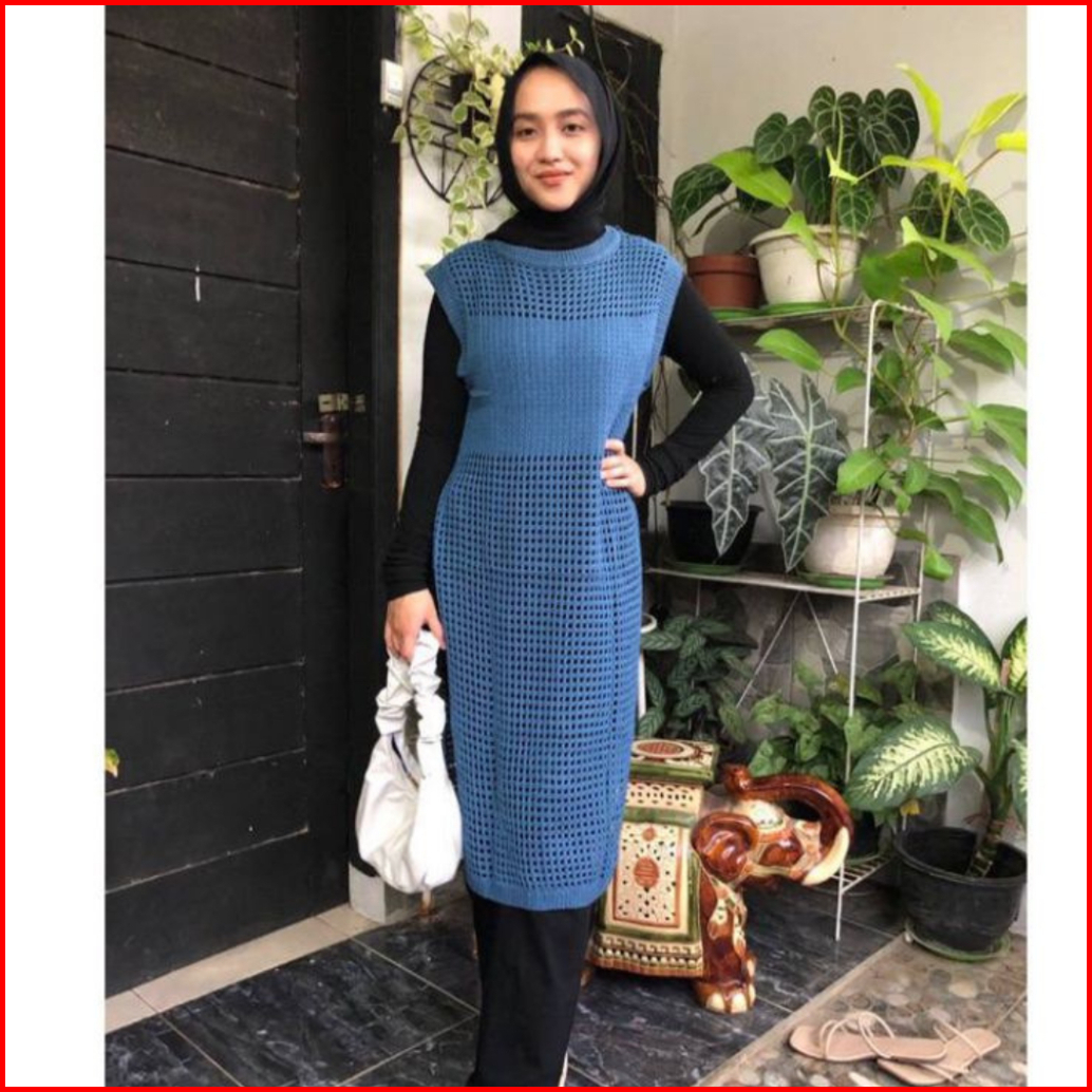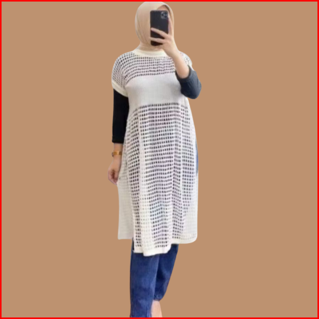 Kayla Tunik Jaring Rajut Wanita Outer Pantai Dress Knit Korean Style Premium Tebal