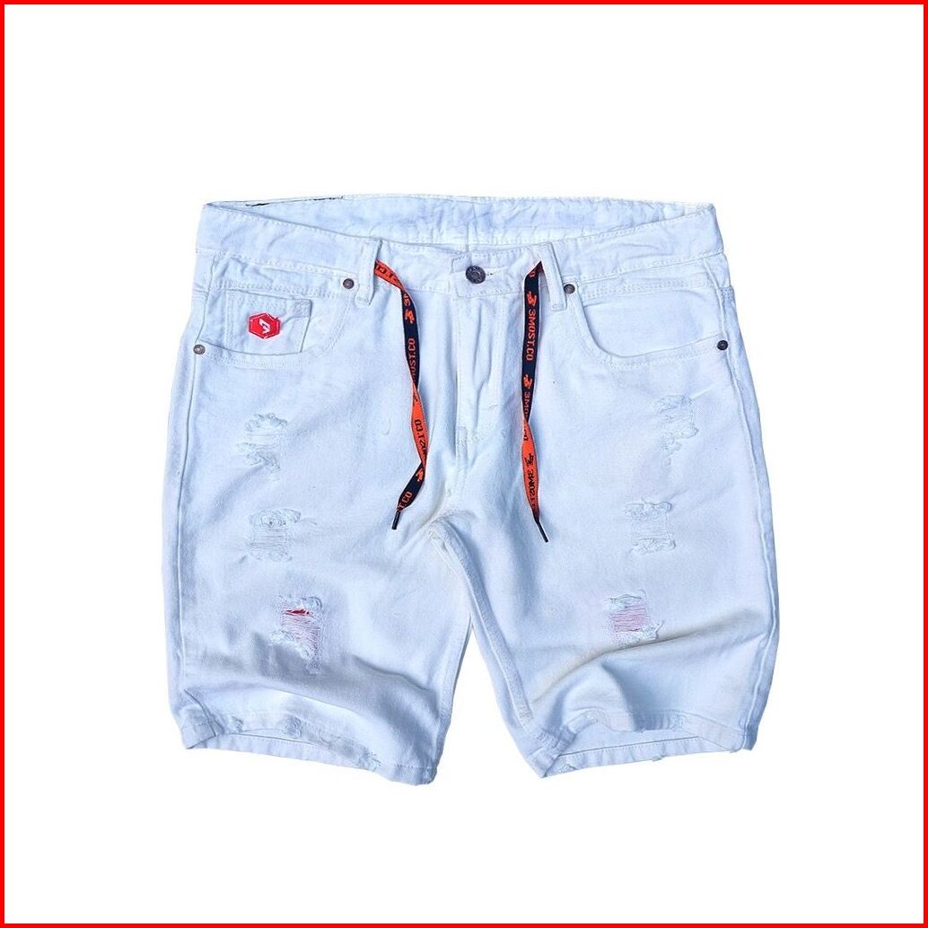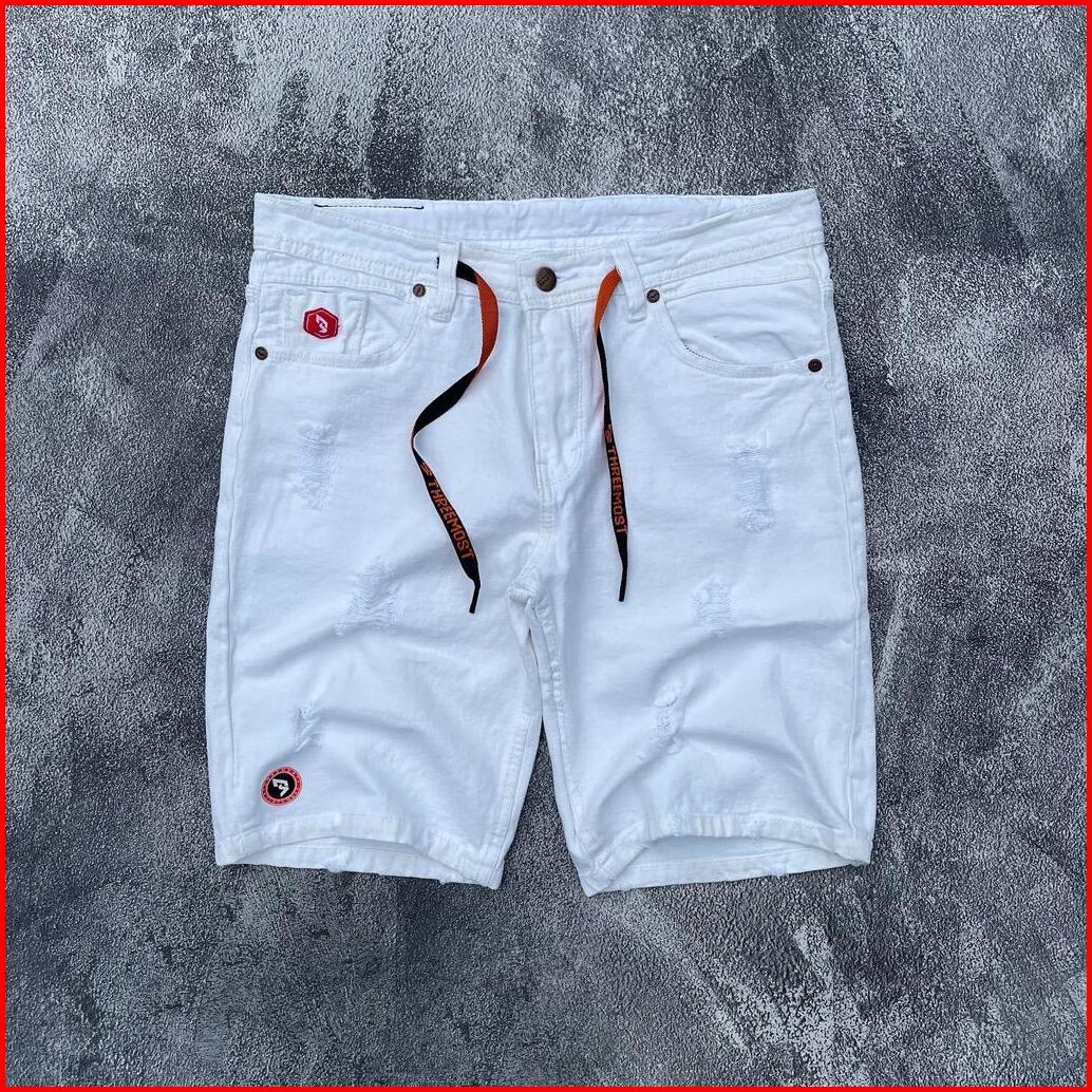 Celana Pendek Jeans Sobek Putih Pria Distro