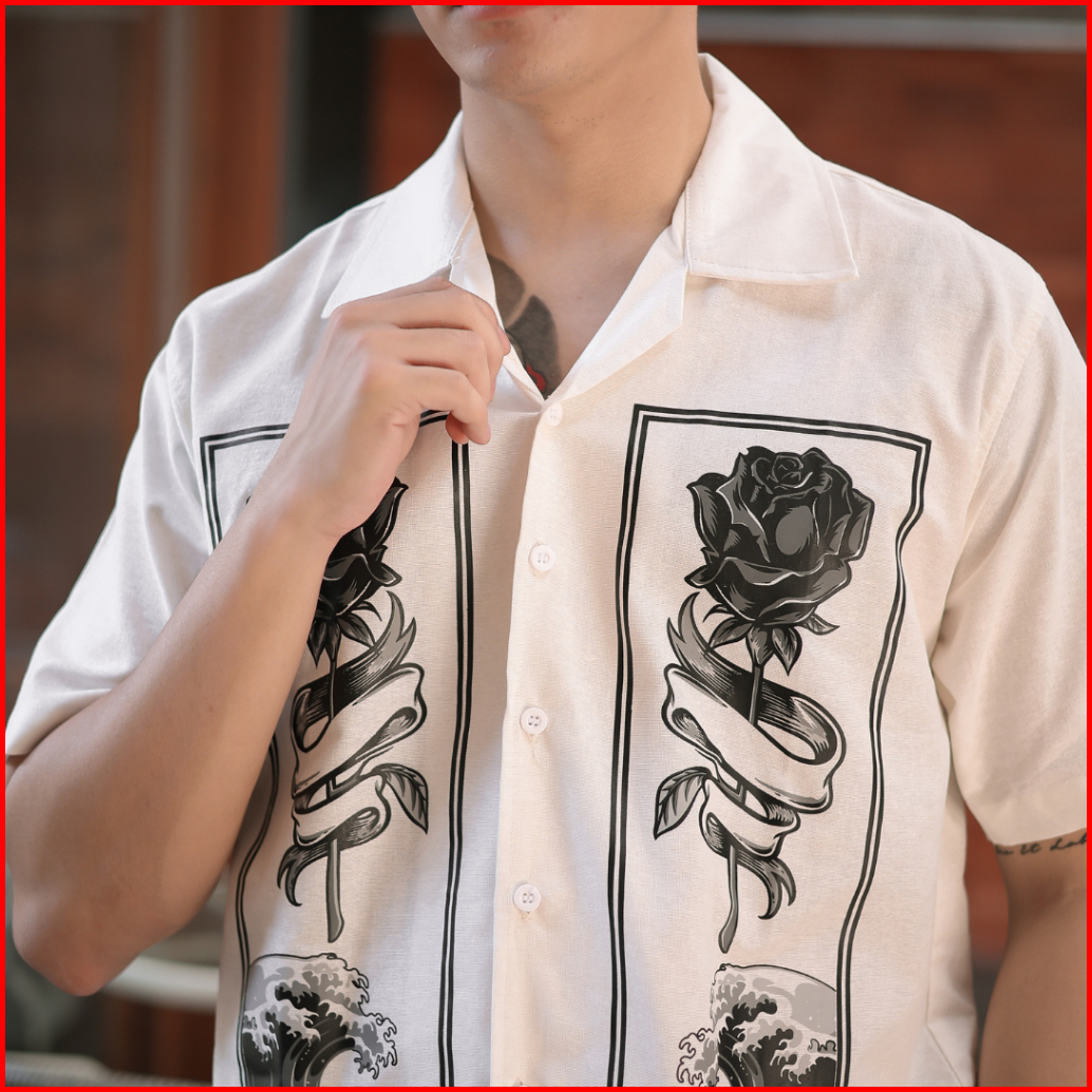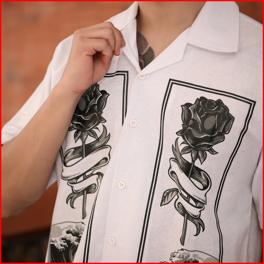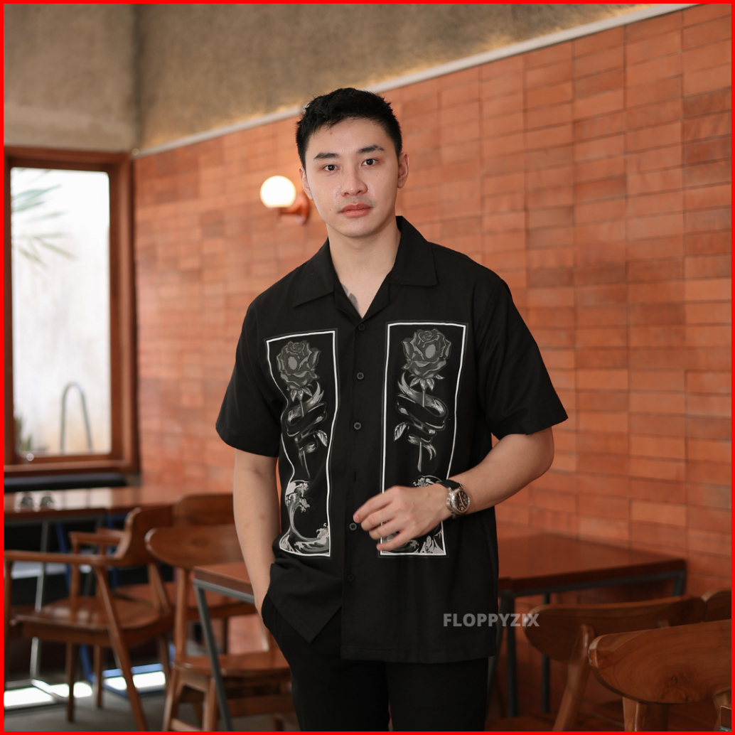 Floppy Kemeja Black Roses Kameja Pendek Pria Kameja Linen Kemeja