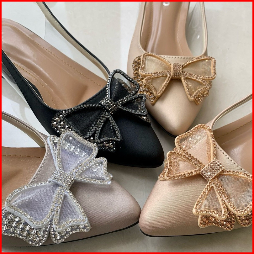 Sandal Wanita Mules Hak 3 Cm Sepatu Weding Model Terbaru - Sandal Hak Pesta Style