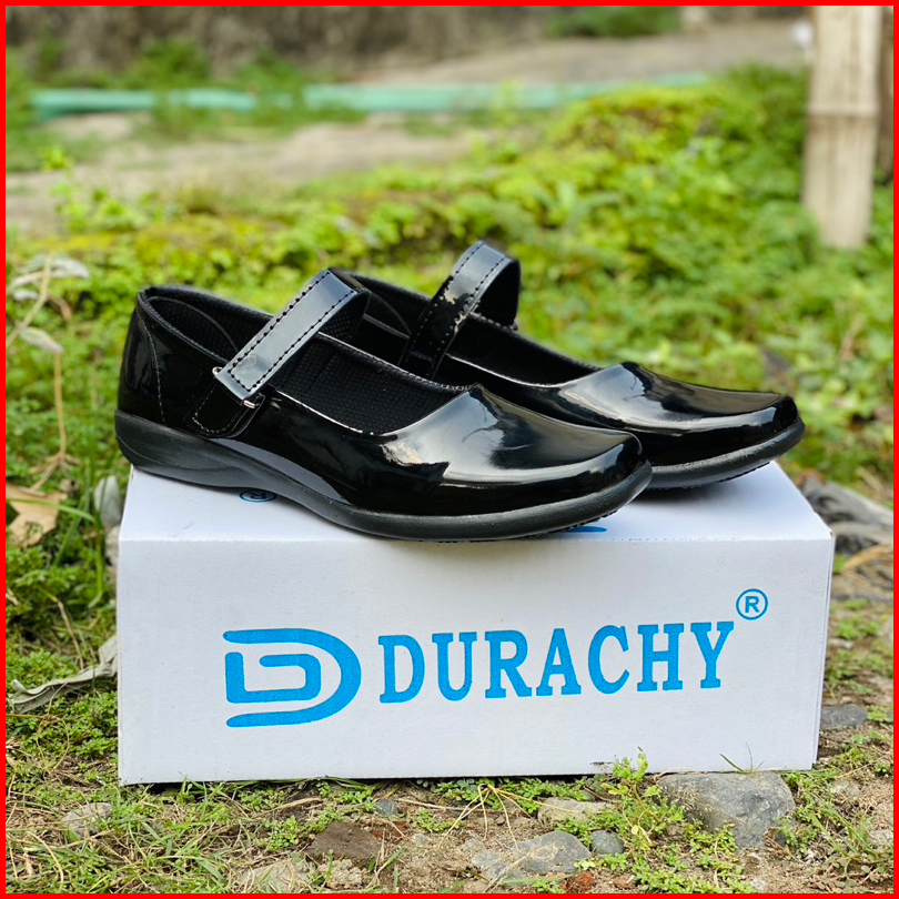 Durachy Sepatu Pantofel Wanita Kantor Hitam Kilap Glossy Paskibra