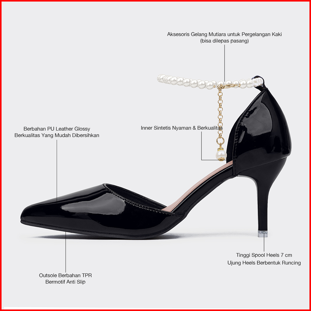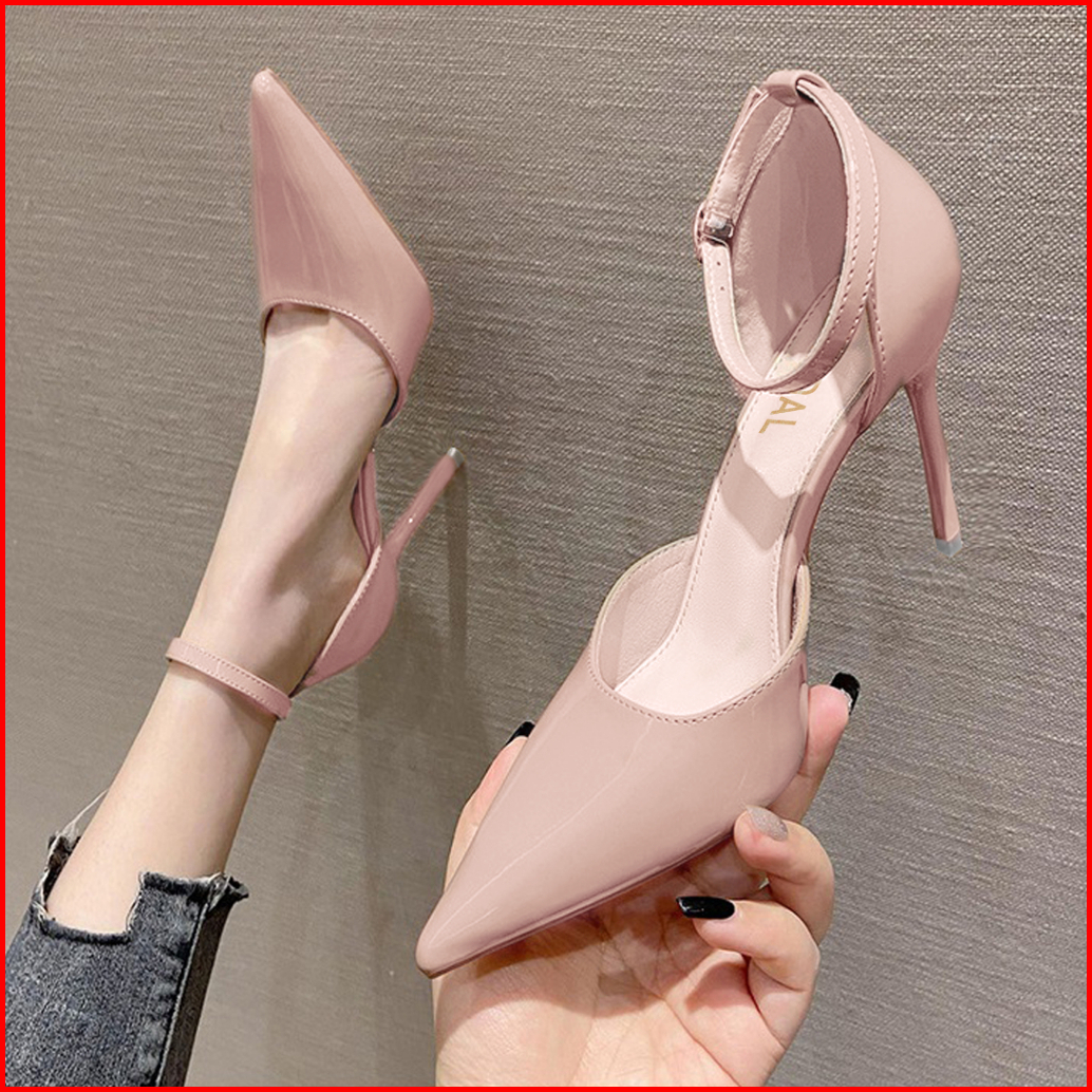 Findal Heels Wanita Hak Tinggi 7cm Runcing Ankle Strap Mutiara 36-43 Hi-040a