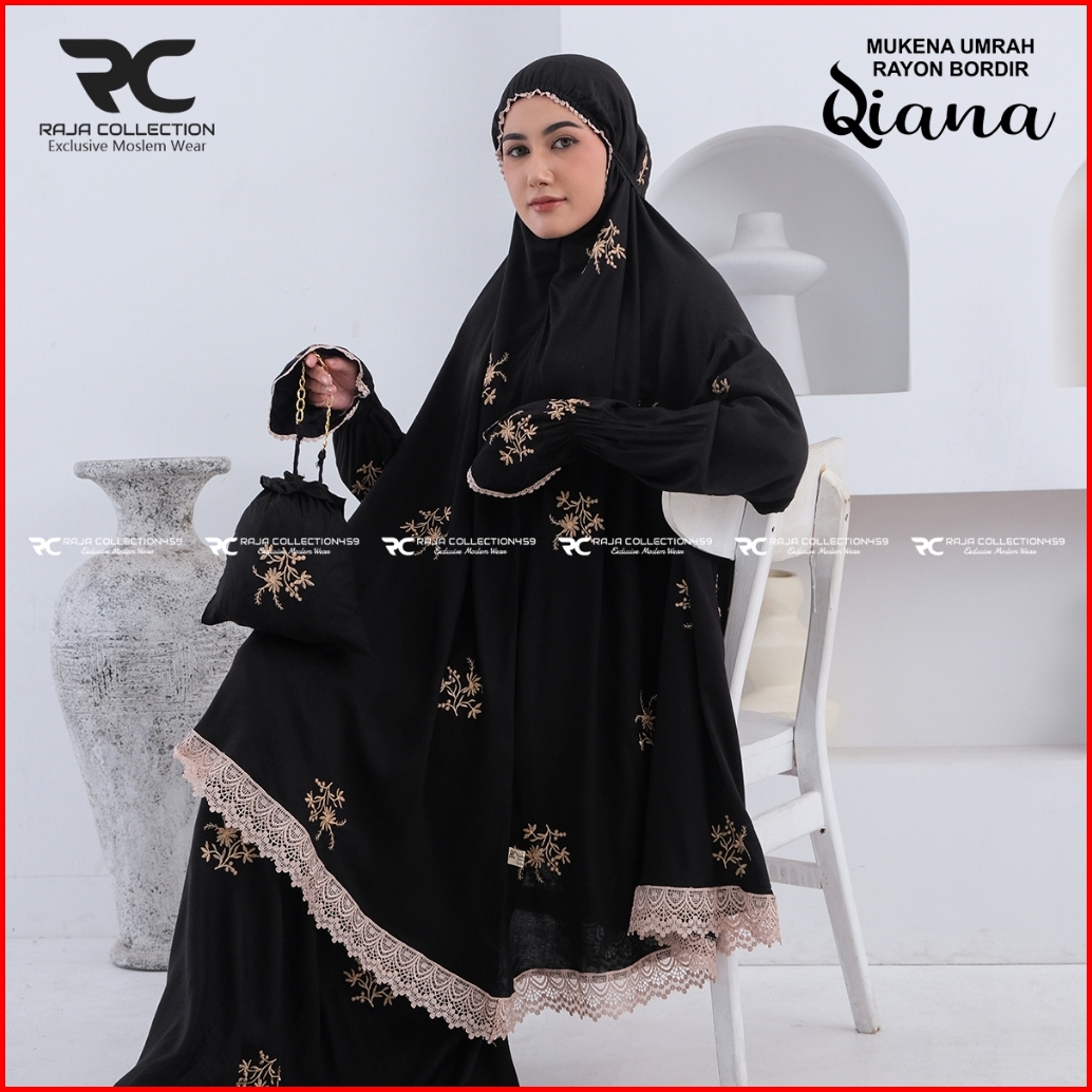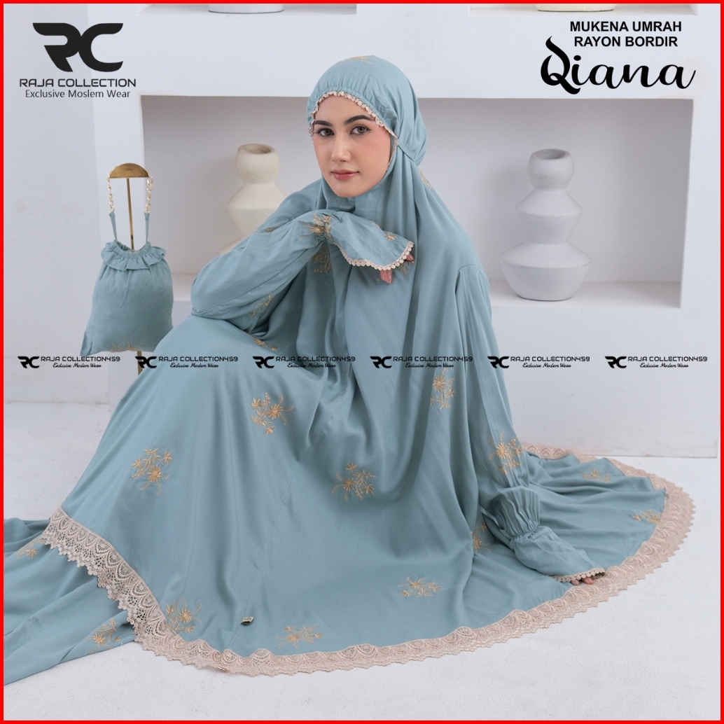 Raja Collection459 - Mukena Dewasa Jumbo Umroh Dan Haji Atas Bawah Berlengan Rayon Bordir Qiana