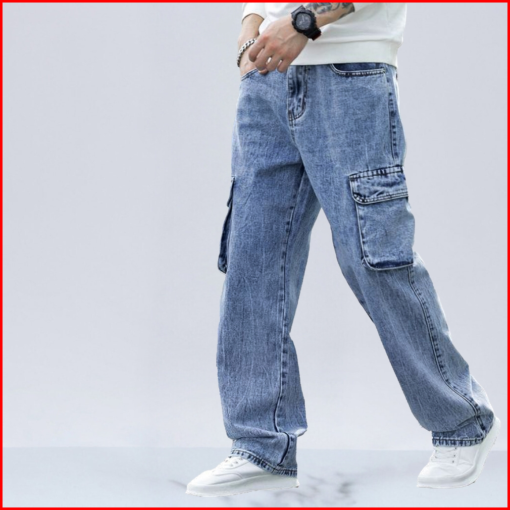 Vcrl- Celana Jeans Cargo Panjang Pria Korean Stlye Straight Loose Pants Pria Outfit Skena
