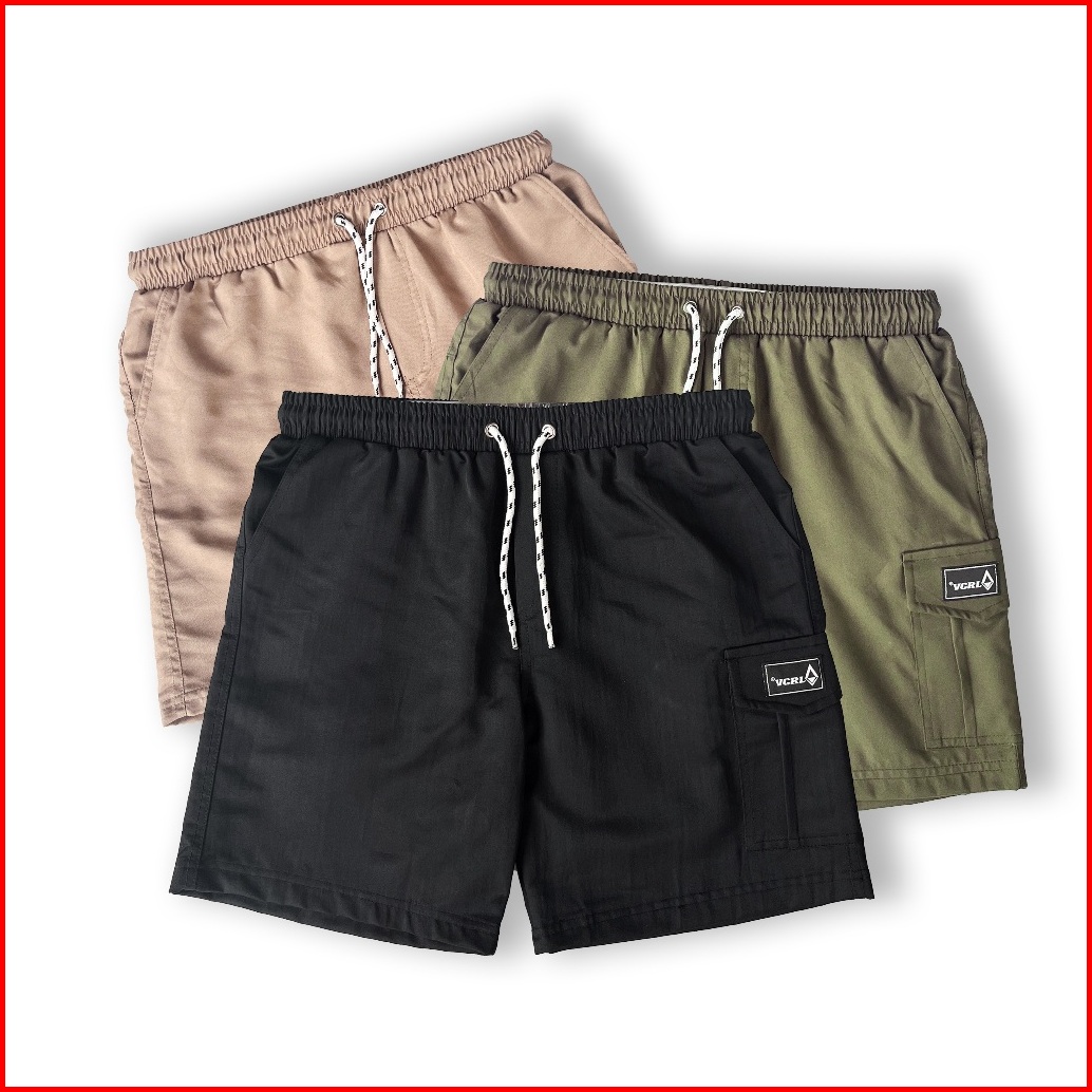 Vcrl- Celana Cargo Pendek Pria Boarshort Premium Tebal Hitam Basic Korean Style Skena