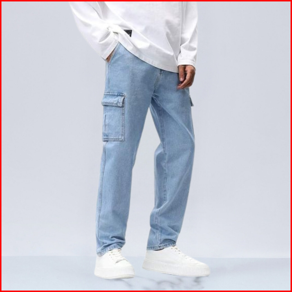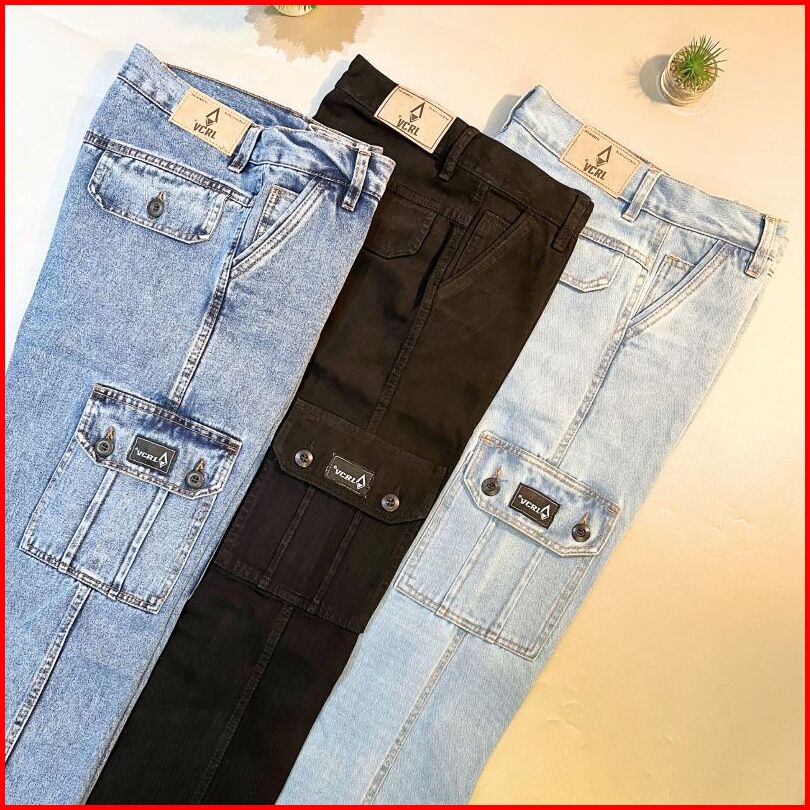 Vcrl - Celana Panjang Cargo Jeans Pria Korean Stlye Loose Gombrang Pria Bahan Tebal Premium Skena