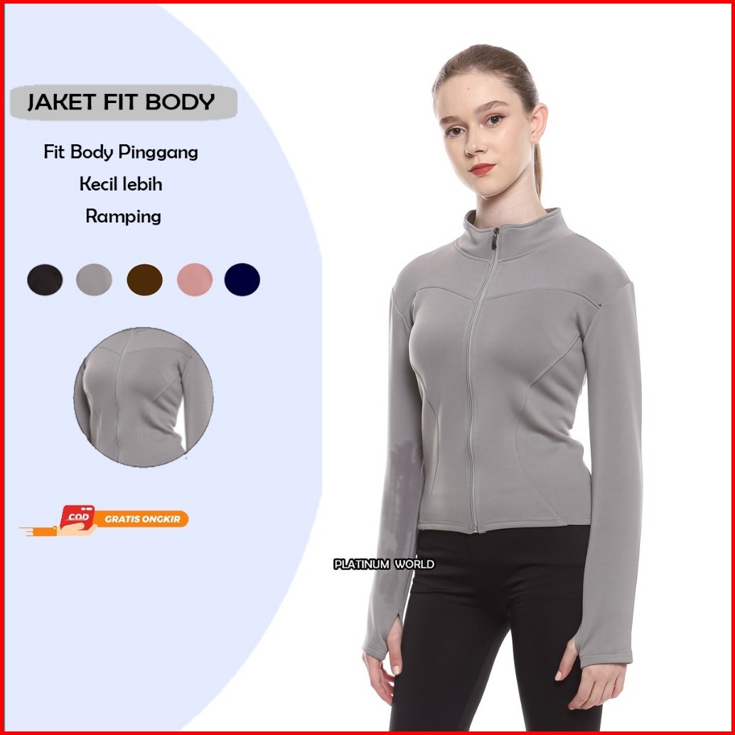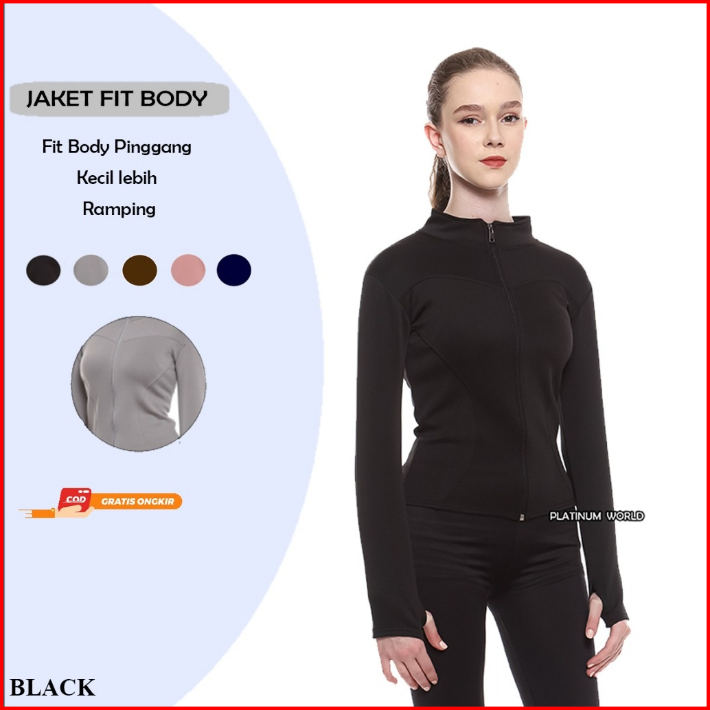 Platinum World Jaket Olahraga Lengan Panjang Fit Body Wanita Yoga Pilates Lari Gym Fitnes Black Premium Quality