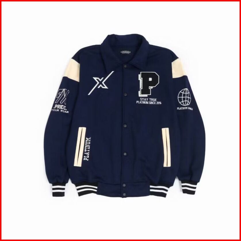 Platinum World Jacket Varsity Full Bordir Rv Hitam Outerwear Varsity Jacket Baseball East Team Fleece Black