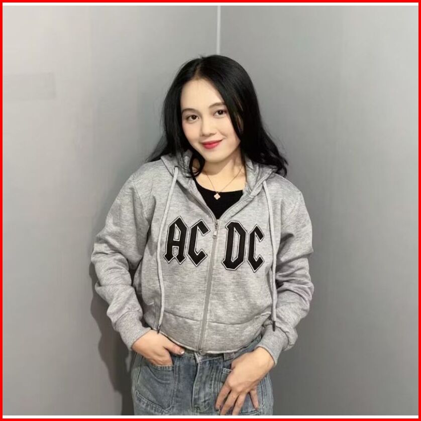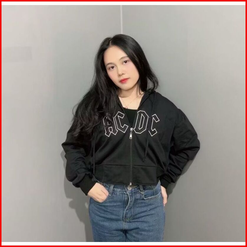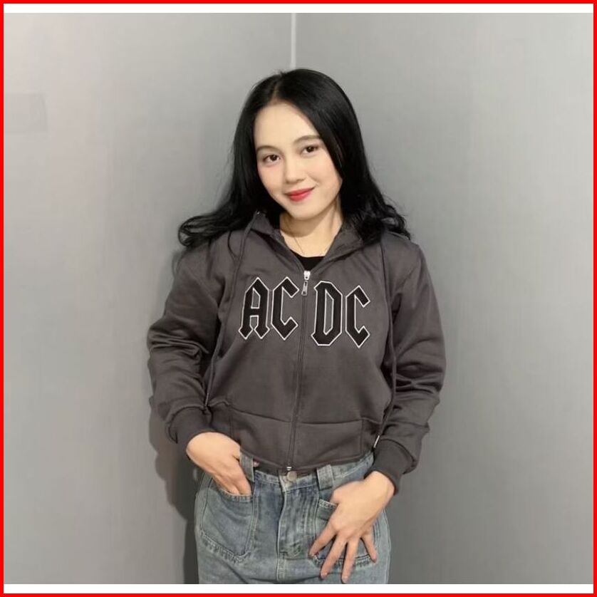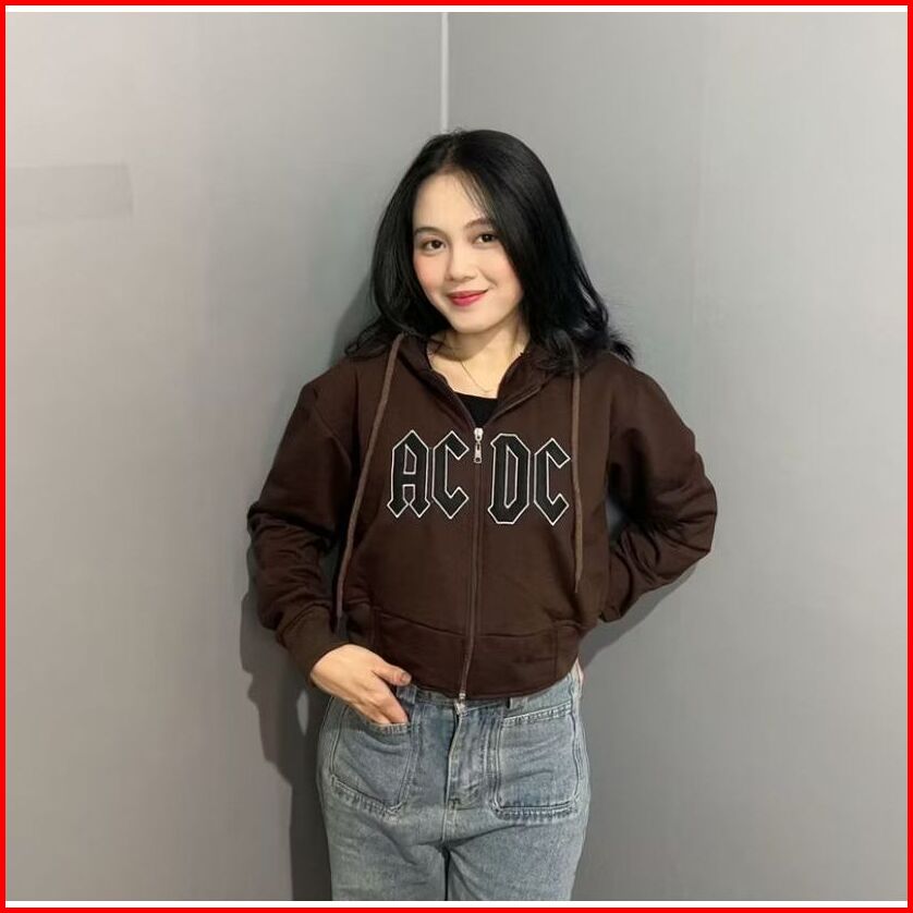 Platinum World Hoodie Zipper Crop Acdc Coffe Sweater Wanita Crope Premium Quality S1