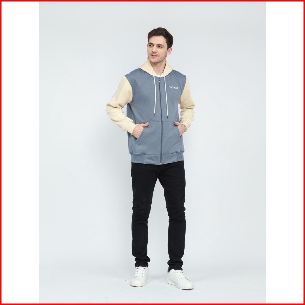 Platinum World Zipper Hoodie Resleting Kombinasi Pria Wanita - Jaket Sweater Couple Jumbo Xxl 3xl V2