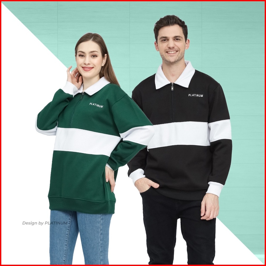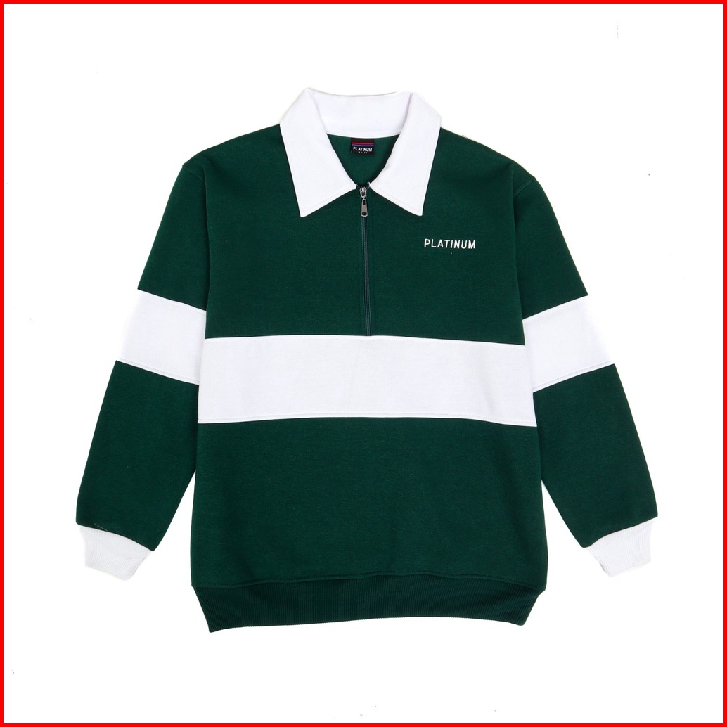 Platinum World Sweatshirt Crewneck Half Zipp Rugby Kombinasi Pria - Wanita V7