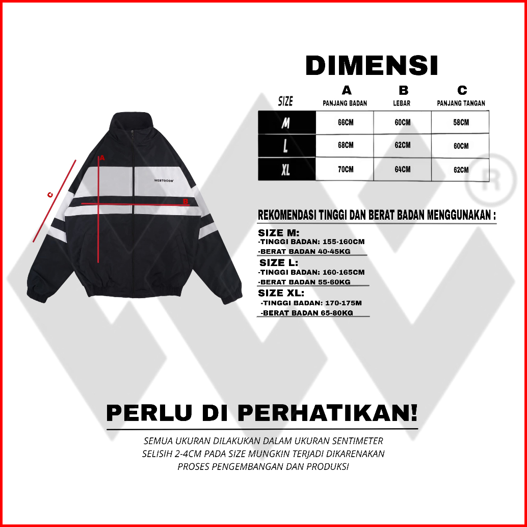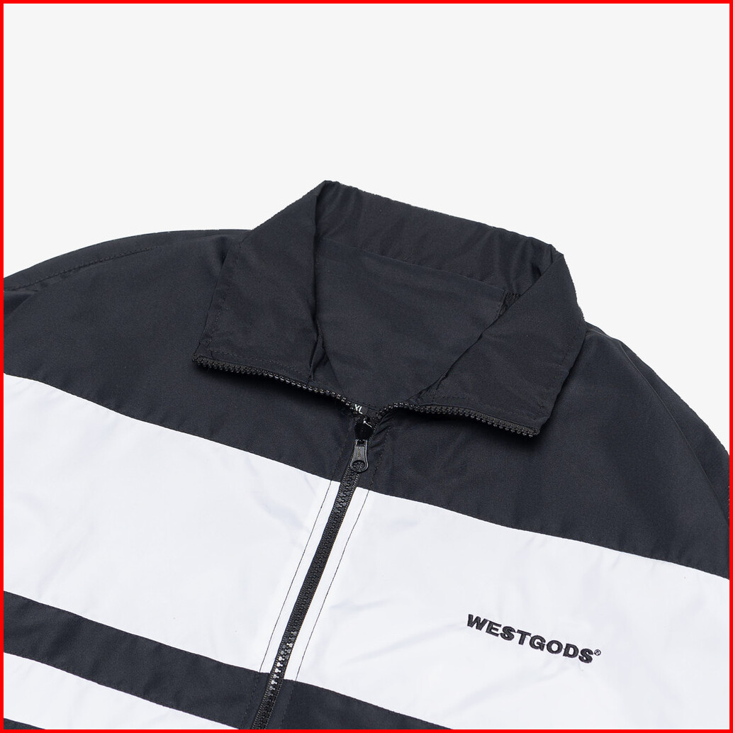 Westgods - Jaket Tracksuit Running Tracktop Olahraga Pria Wanita Bahan Parasut Warna Hitam List Putih