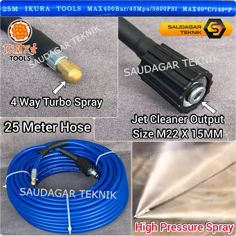 Paket Selang Jet Cleaner + Nozzle Pembersih Saluran Pipa Selokan Mapet Sewer Jetter Nozzle Turbo Pipe Drain Cleaner