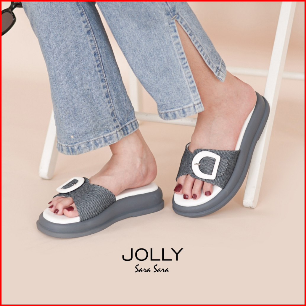 Sara Sara Jolly Grey Sandal Slop Wanita Gesper Sol Platform