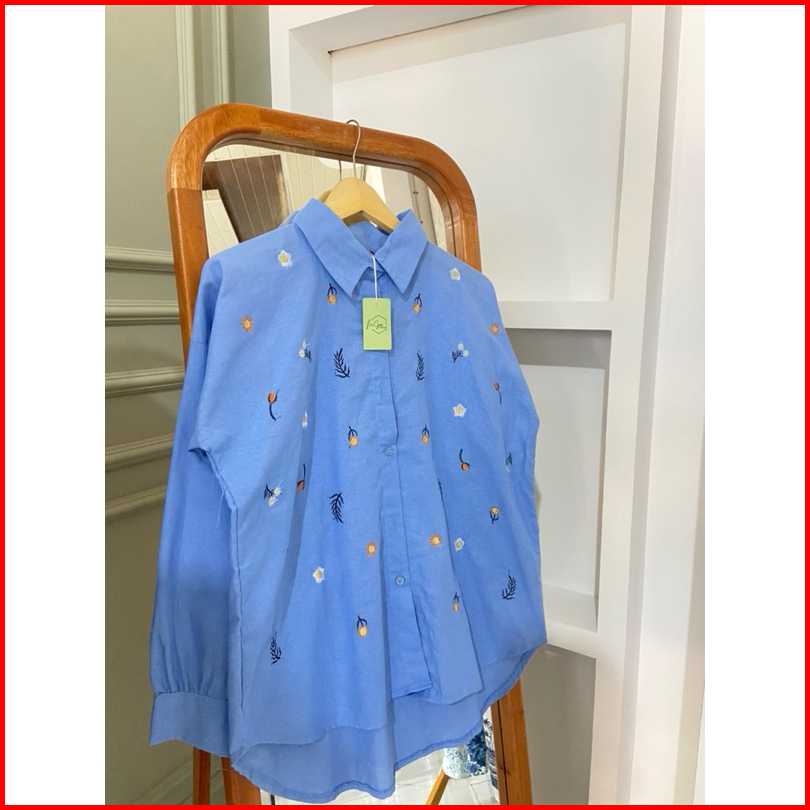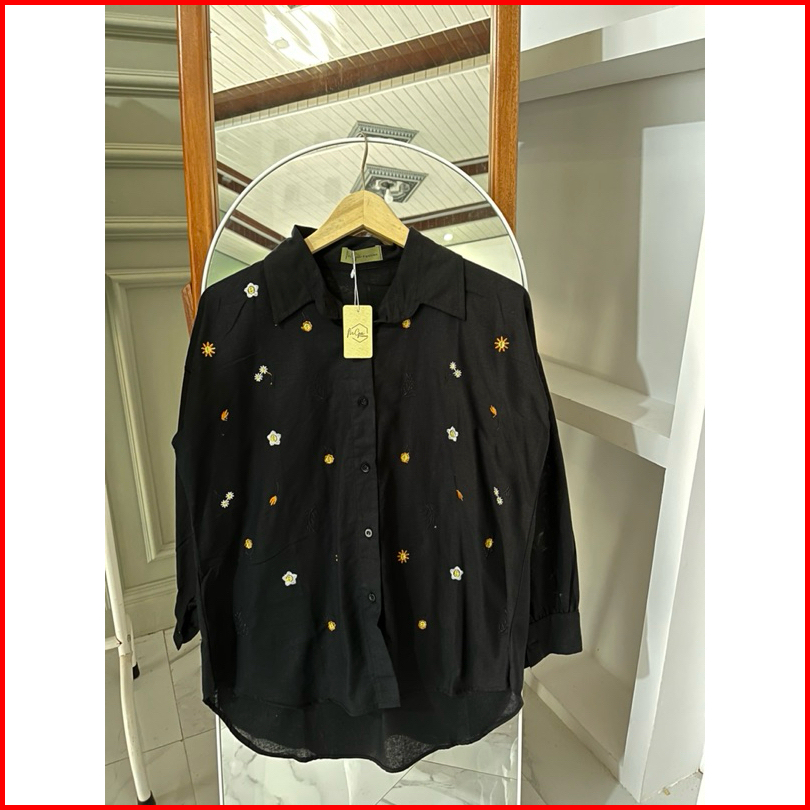 Elga Blouse Kemeja Wanita Bordir Linen Kemeja Wanita Lengan Panjang Kemeja Wanita Bordir Wanita