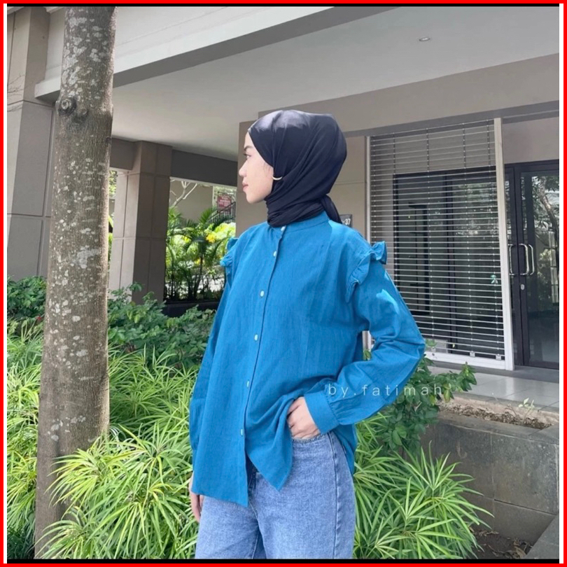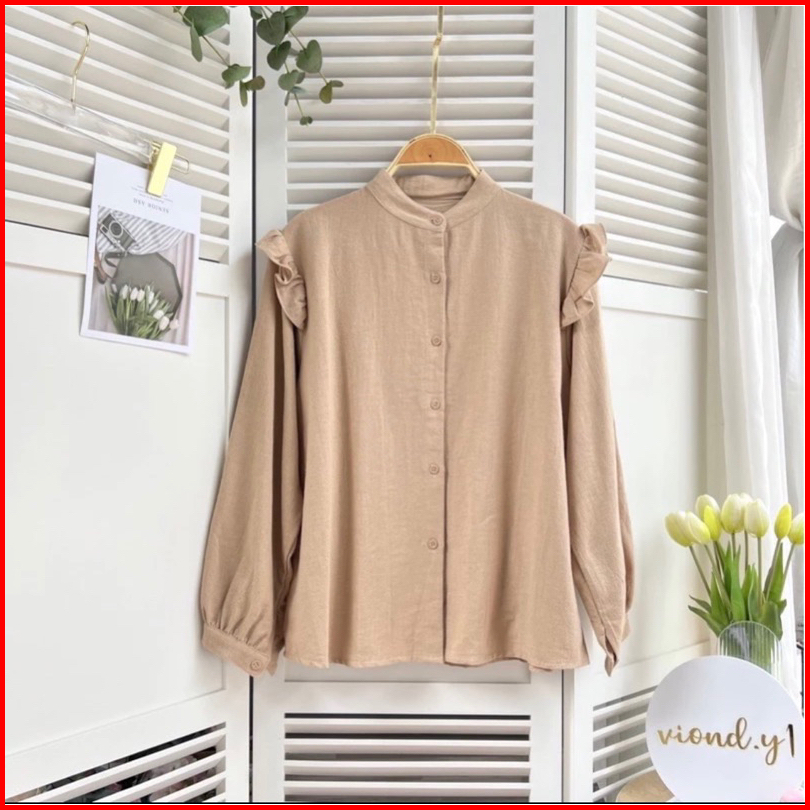 Yurim Blouse Ruffle - Atasan Wanita - Kemeja Linen Basic Lengan Panjang