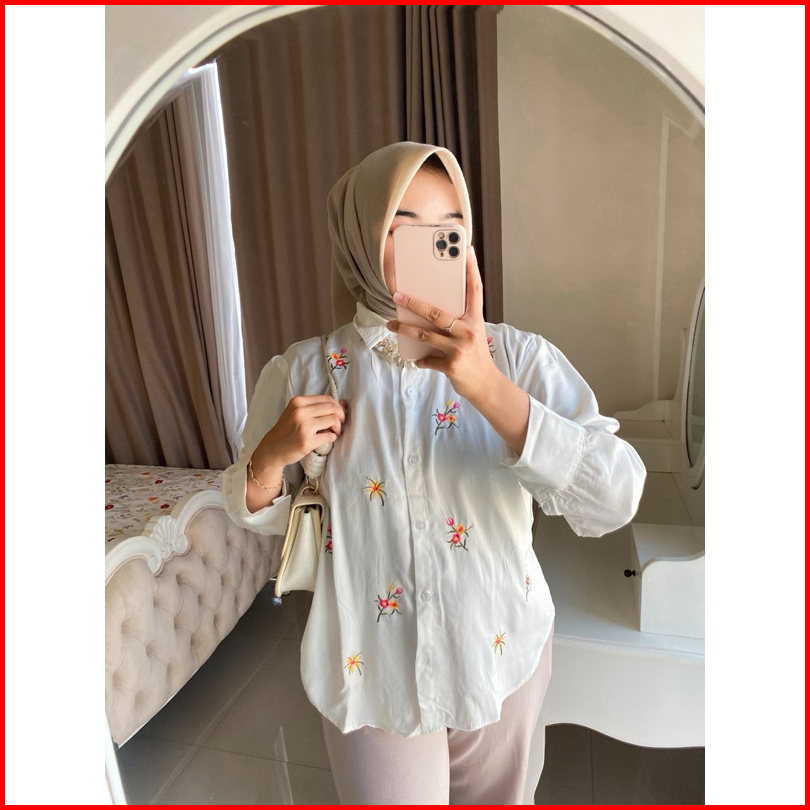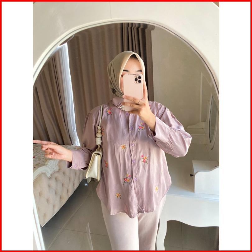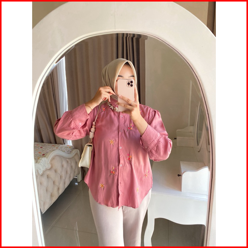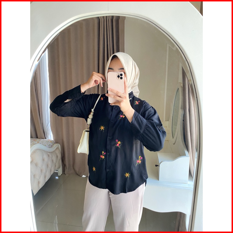 Ranum Blouse Kemeja Bordir Oversize Wanita Rayon Twill Premium Blouse Bordir Wanita