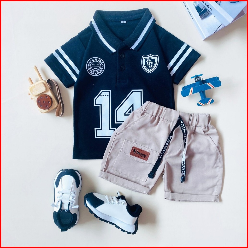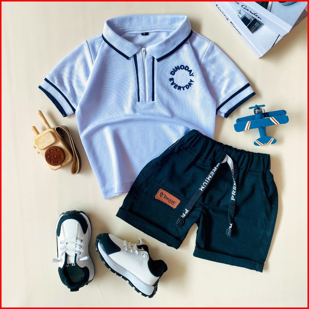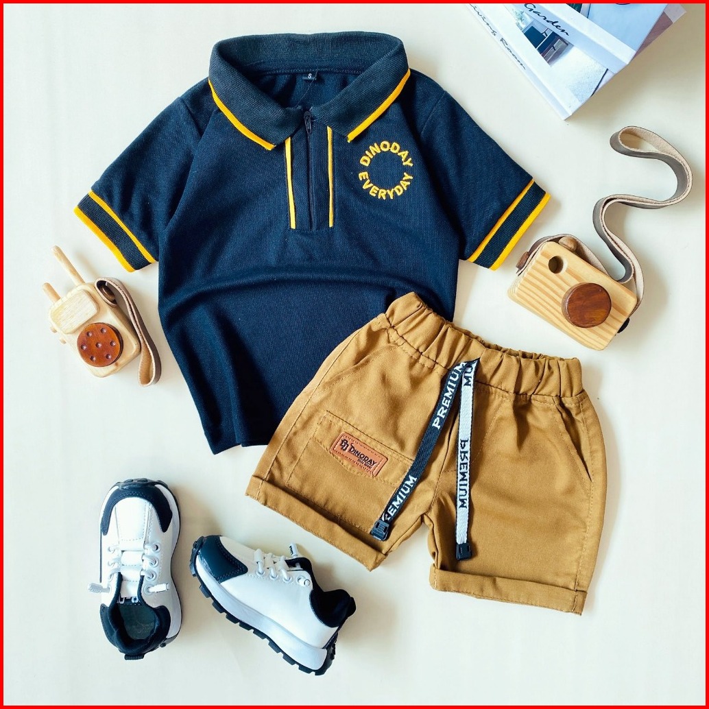 Estishop X Dinoday Setelan Anak Cowok Baju Wangki Kerah Celana Hotpants Saku 1-9 Tahun