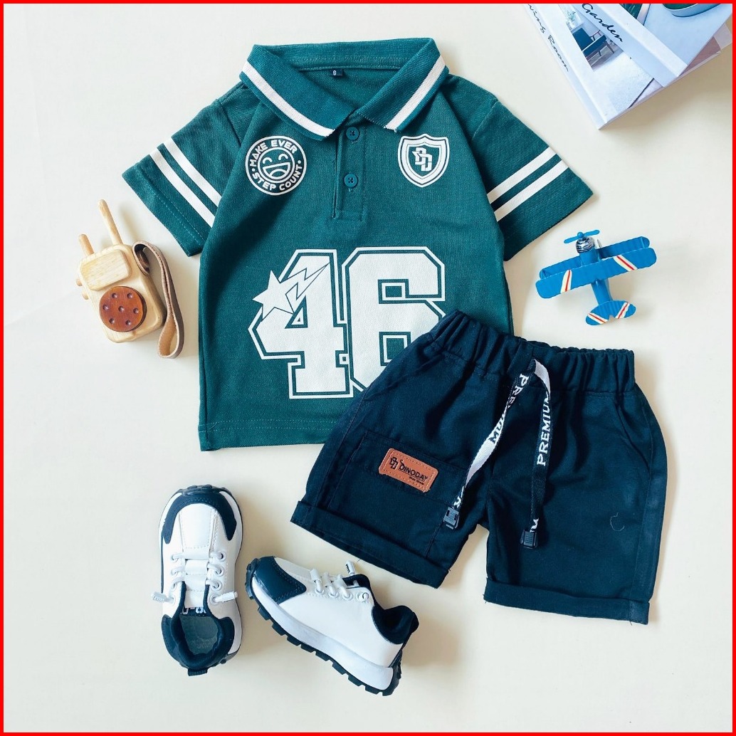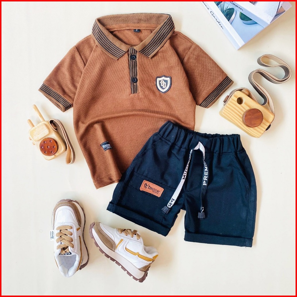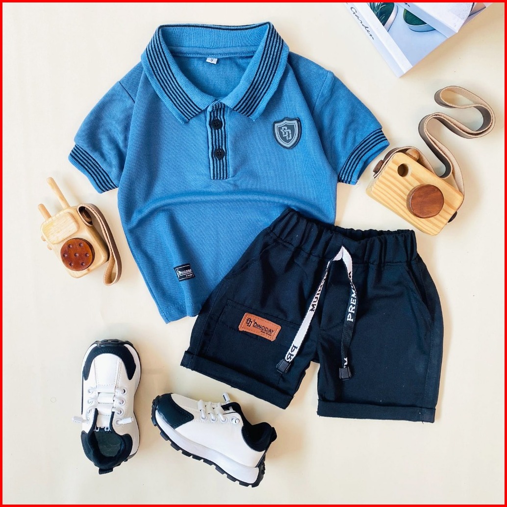 Estishop Setelan Anak Laki Laki Perempuan Baju Kerah Celana Saku Hotpants 1-9 Tahun