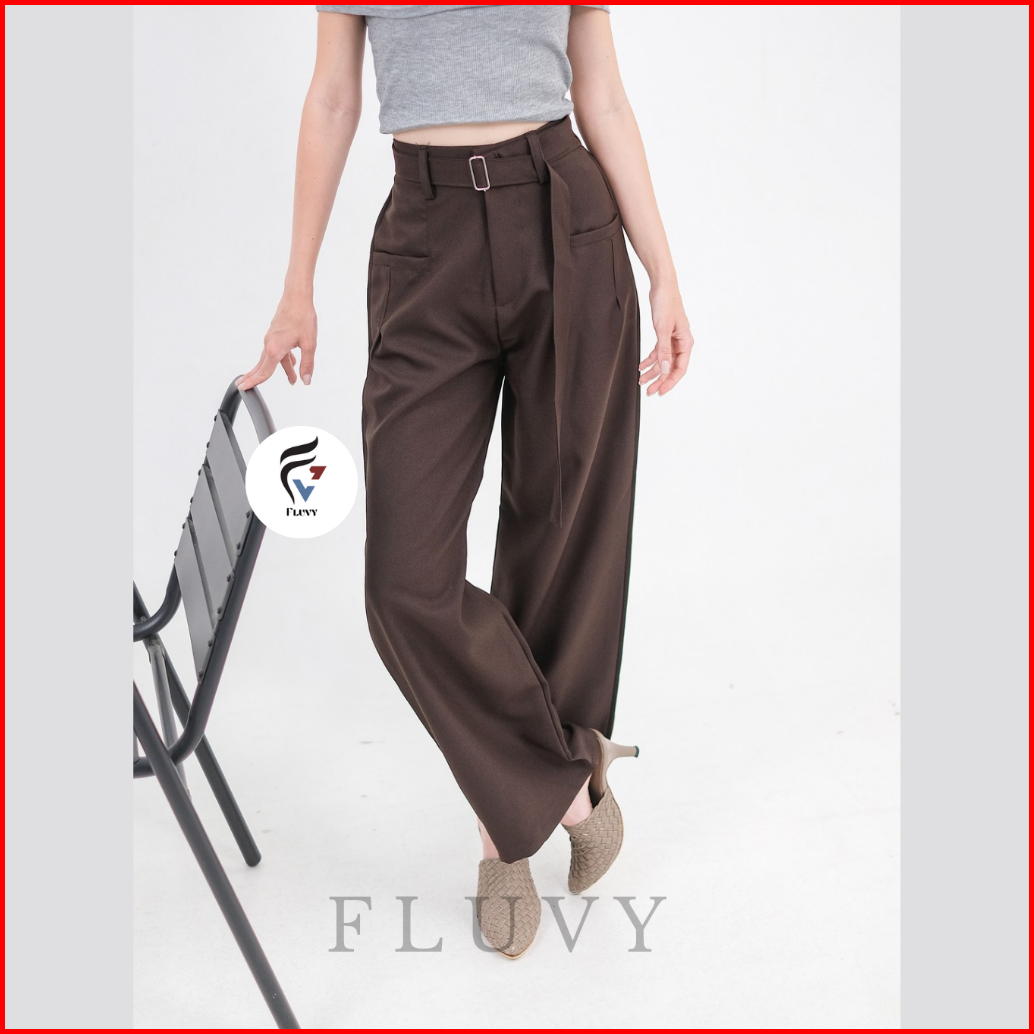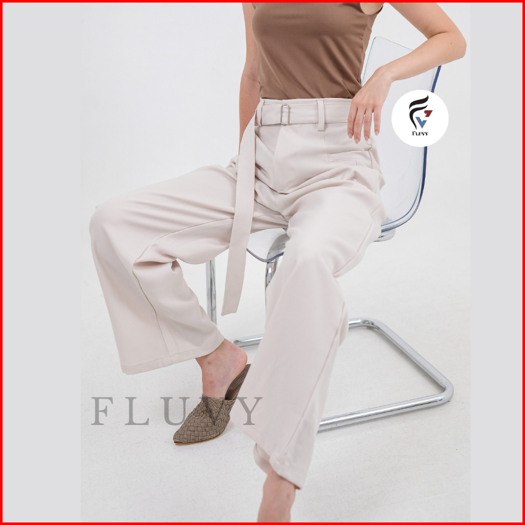 Fluvy - Obi Pants - Celana Highwaist Trousers Loose Pants - Celana Kulot Kantor Formal Anti Kusut Casual