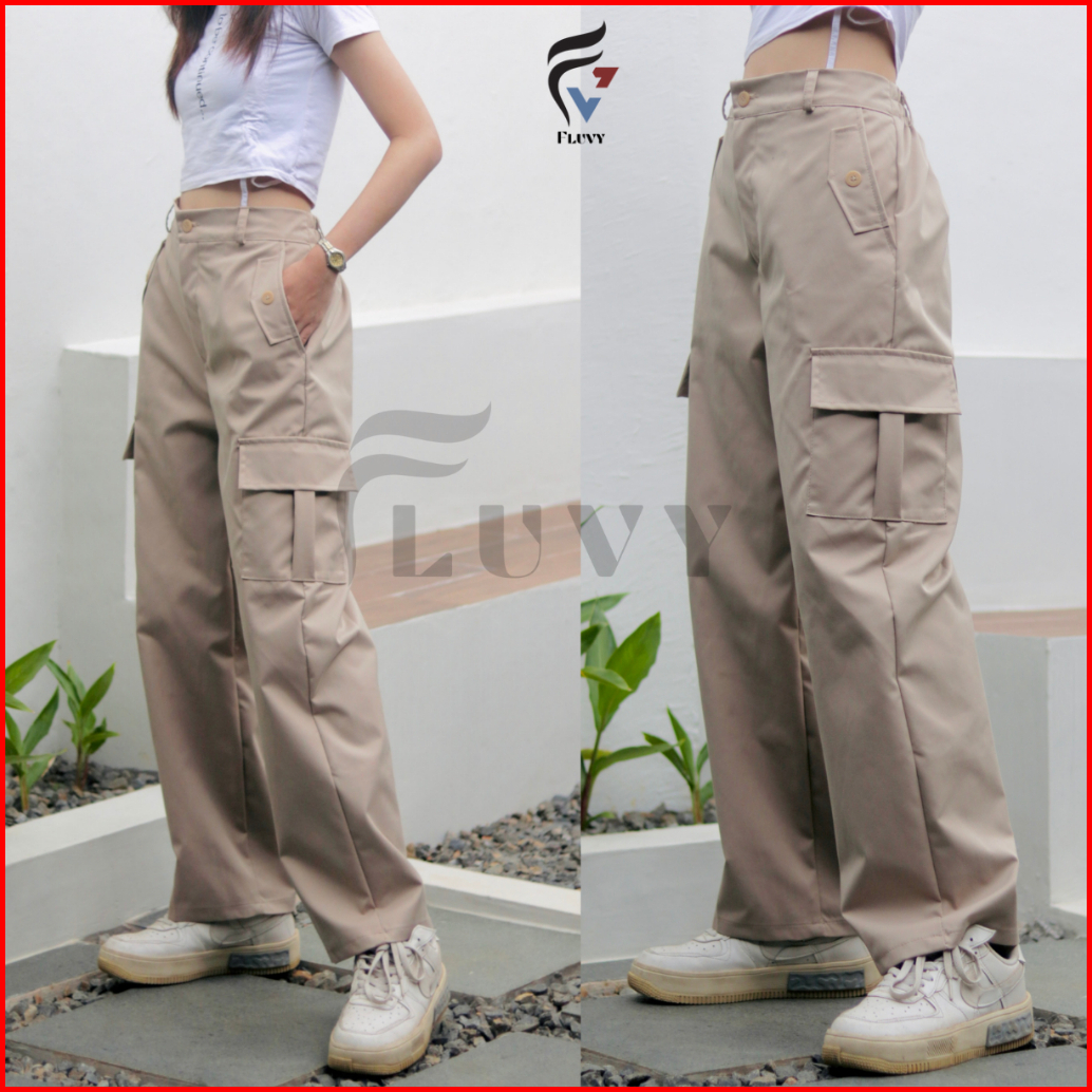 Fluvy - Celana Cargo Wanita Highwaist - Cargo Pant Jumbo Muat Sampai Bb 100 Kg